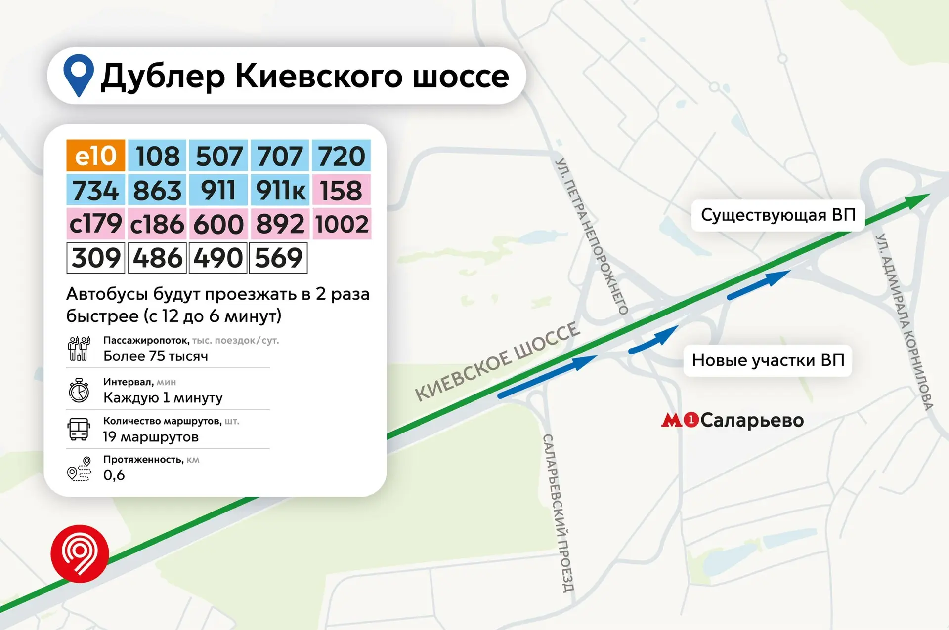 🔹 Киевском шоссе. Проезд участка в районе ТРЦ «Саларис» занимает всего 6 мин. вместо 12 мин.