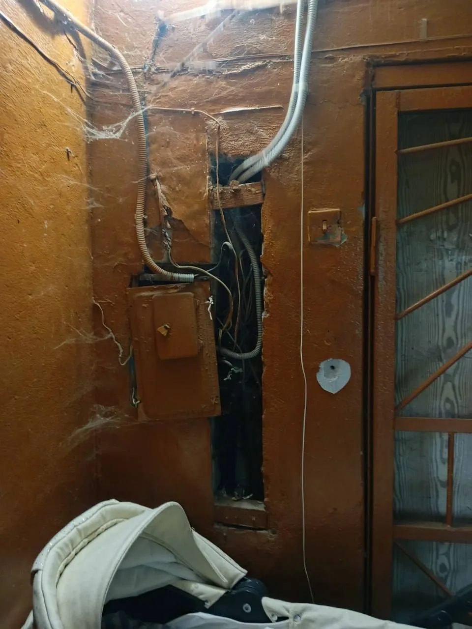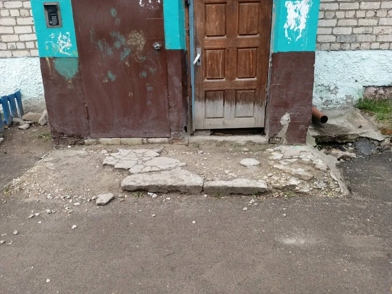 В Калужских Кременках какой-то гений убрал стекло из двери подъезда и вот, что произошло.