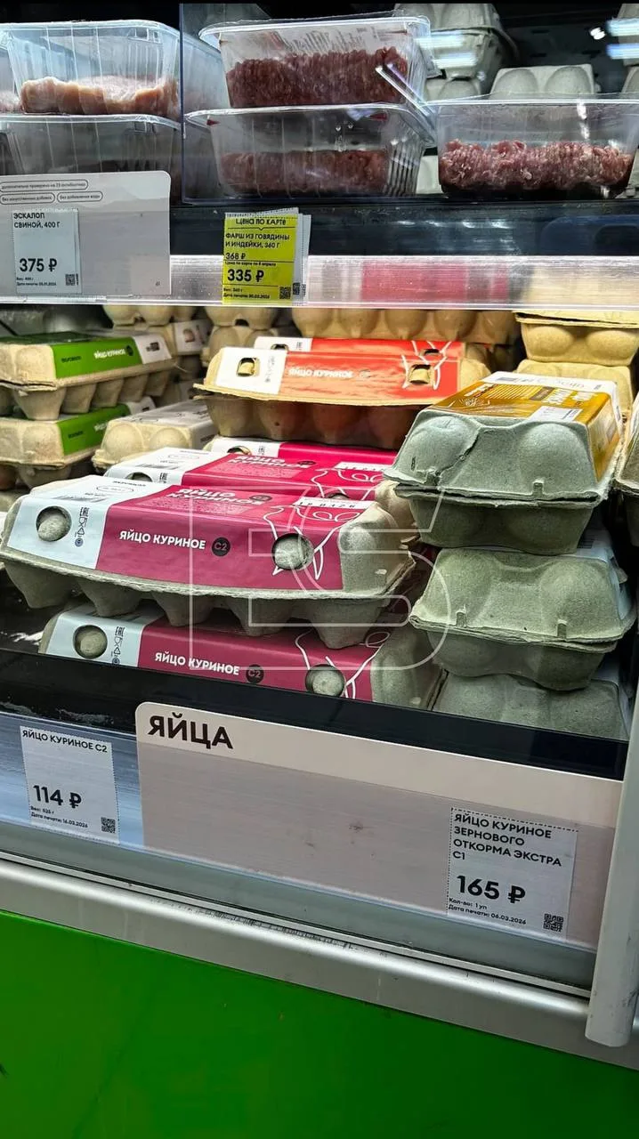 Буквально неделю назад мы ходили по магазинам и рассказывали вам, что почём. И вот решили снова посмотреть на цены. Во ВкуссВилле яйца куриные зернового откорма стоили 158, а сейчас 165 рублей за десяток. В «Магните» яйца «Моя цена» были по 64, сейчас по 67.