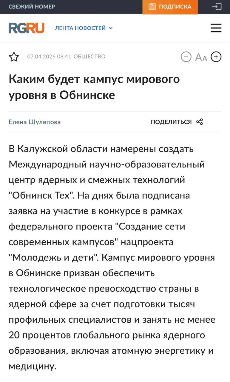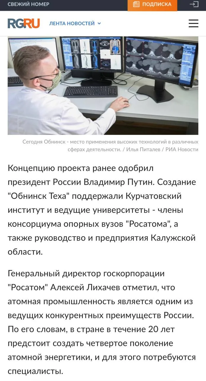 Лихачёв также отметил вторую задачу «Обнинск Теха» — содействие развитию Калужской области. Проект уже стал ядром мастер-плана Обнинска, а регион в ближайшие годы получит сотни хорошо подготовленных специалистов.