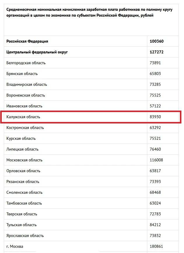 Далеко не все регионы такой могли похвастать. В Калужской области средняя зарплата за этот период хоть и выросла по сравнению с 2025-м годом, но все равно не дотянула: 83 930 рублей. Делать из этого какие-то сложные выводы не стоит: во всей стране только в 16 регионах средняя зарплата превысила отметку в 100 тыс. рублей. Как правило это богатые природными ископаемыми субъекты вроде Тюменской области, ХМАО и т.д.