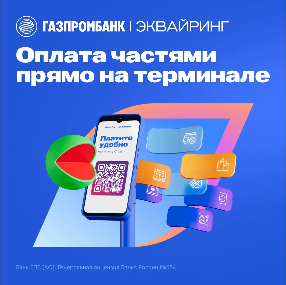 Газпромбанк впервые в стране запустил терминалы с оплатой частями в Сплит. Оплачивать можно с любого банковского счета, в торговых точках и сферах услуг.