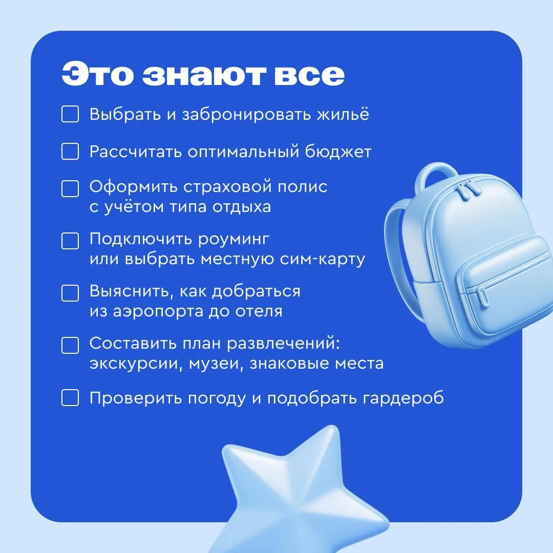 Конечно, в поездке за границу абсолютно всё предусмотреть невозможно, но попытаться стоит. Проверьте, не упустили ли вы что-нибудь важное, в нашем многоуровневом чек-листе ➡️