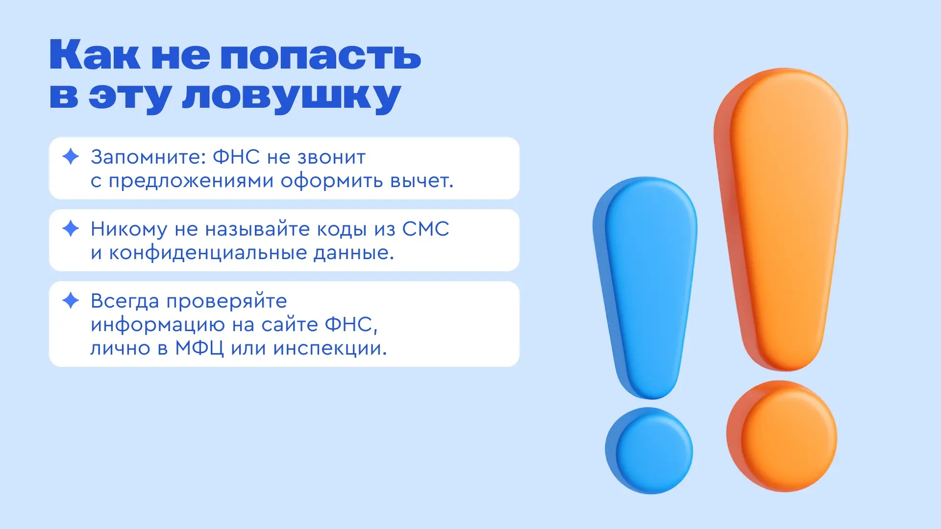 Подробнее о схеме с налоговыми вычетами, которую сейчас используют мошенники, рассказали в карточках.