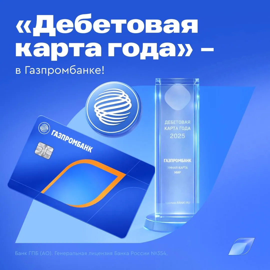 🏆 Газпромбанк получил награду – «Лучшая дебетовая карта 2025 года»!