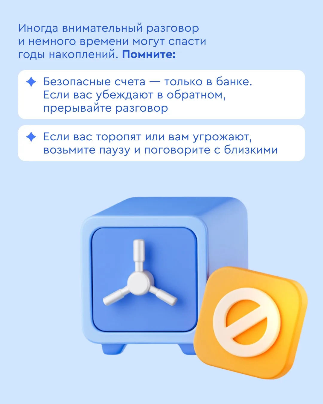 🔸 Если вас торопят и требуют выполнить эти действия — это мошенники