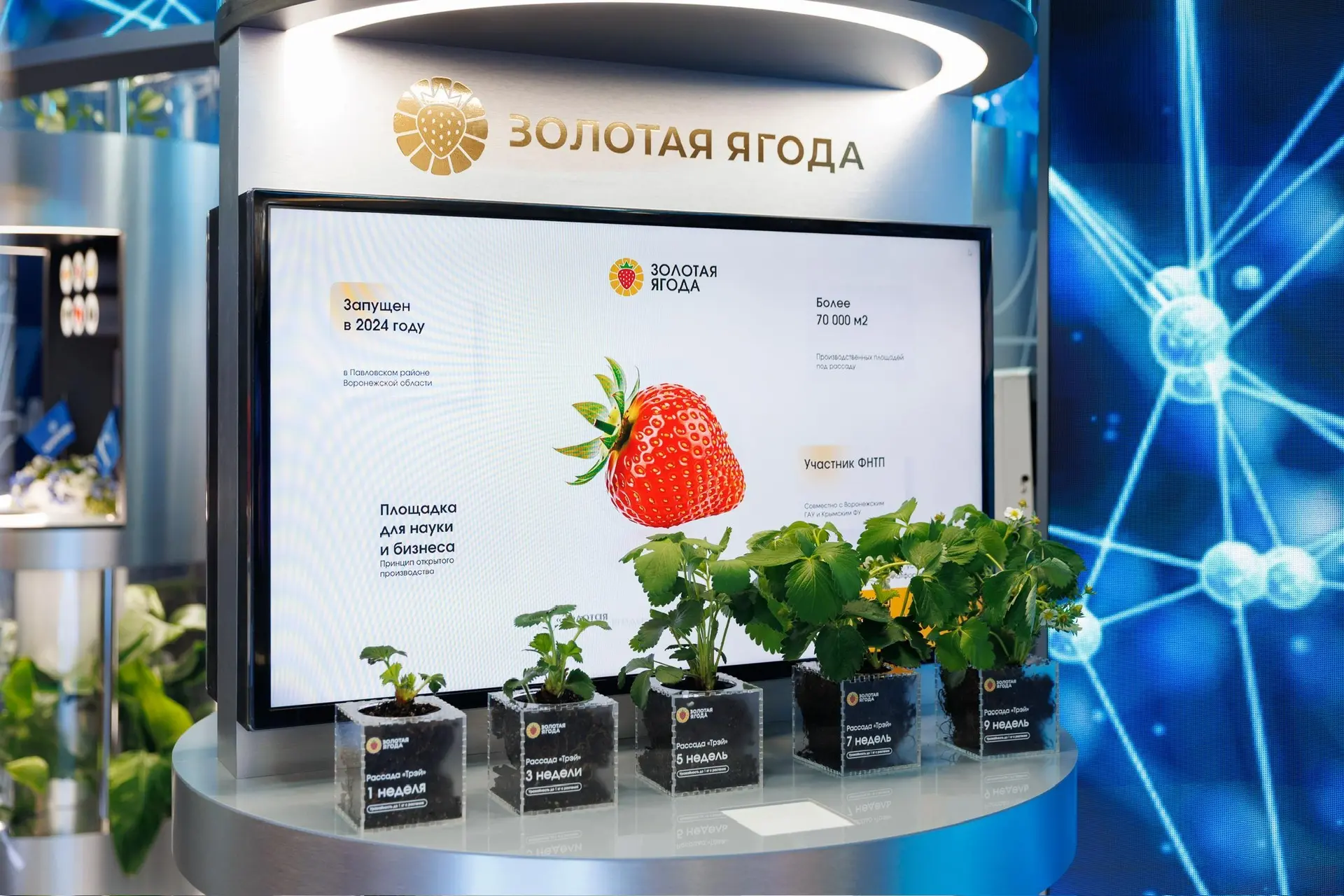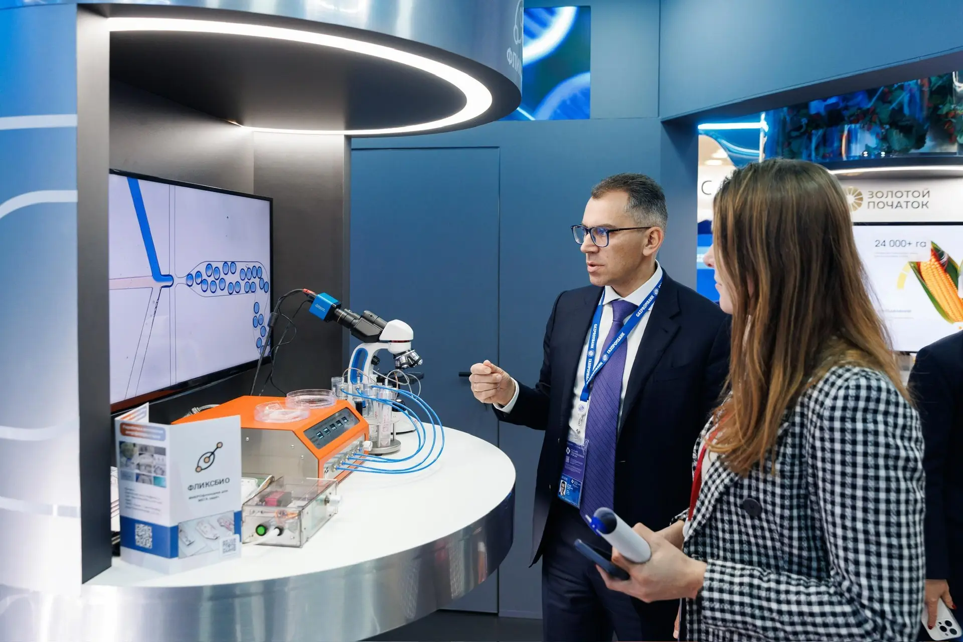 Технологическую цепочку, направленную на повышение эффективности биотехнологического производства Президенту России представил вице-президент Газпромбанка Алексей Федоров. Были продемонстрированы инновационные решения для ускоренной селекции, микрофлюидные технологии и решения в области энергетики. Министр промышленности и торговли РФ Антон Алиханов отметил системное сотрудничество с Газпромбанком в развитии наукоемких технологий.