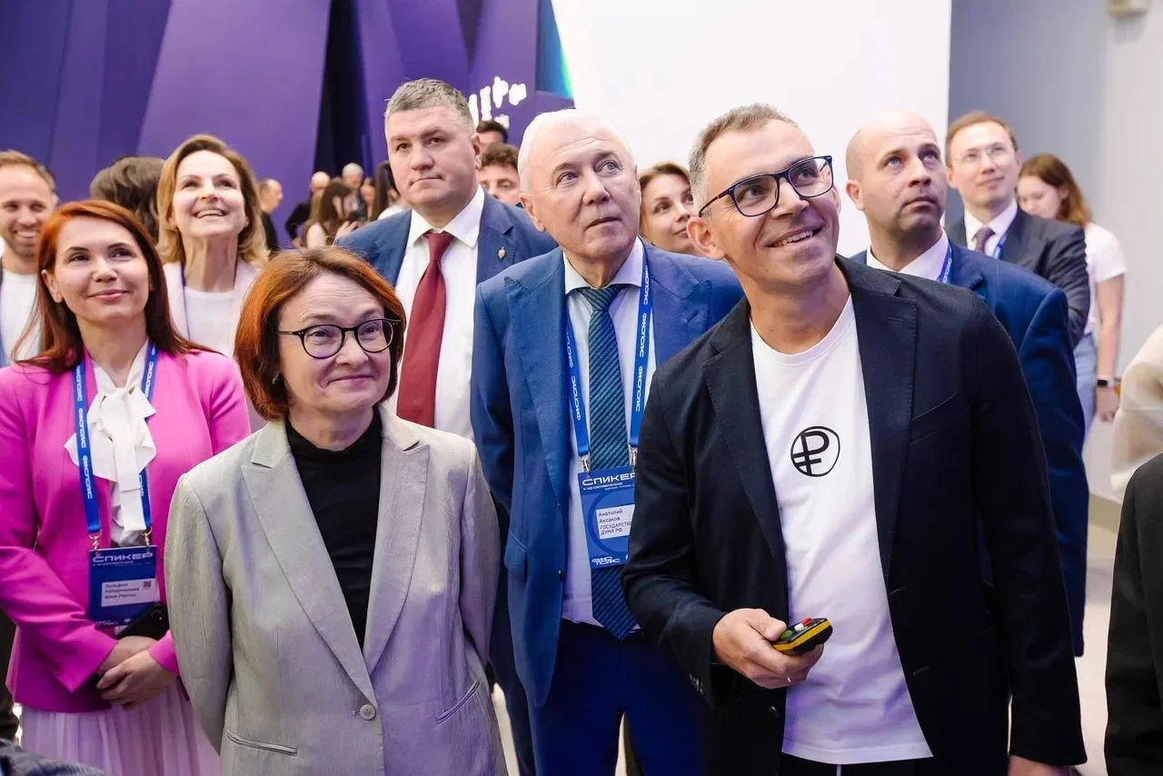 Дмитрий Зауэрс, заместитель Председателя Правления, представил главе ЦБ Эльвире Набиуллиной на стенде Газпромбанка проекты импортозамещения IT-решений.