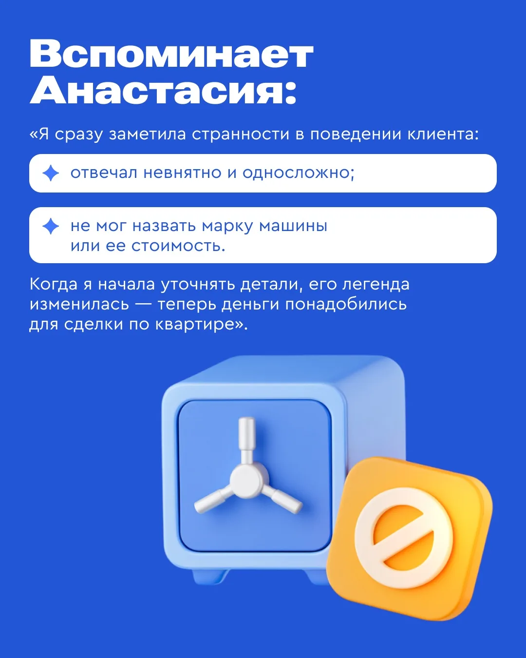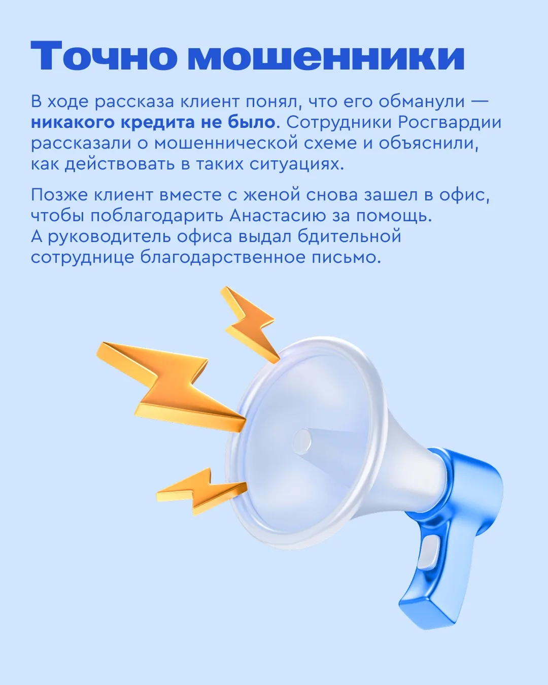 Одна из таких историй, где бдительность нашей сотрудницы помешала преступникам, — в карточках.