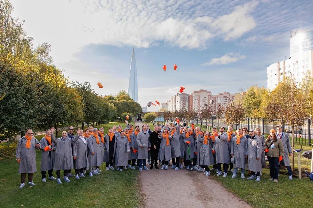 🌳 Деловая часть форума завершилась традиционным экологическим мероприятием — высадкой 35 саженцев яблонь и черемухи в Парке 300-летия в Санкт-Петербурге в соответствии с числом реализованных сделок по размещению ценных бумаг компаний Группы с сентября 2024 года по август 2025 года, организатором которых выступил Газпромбанк.