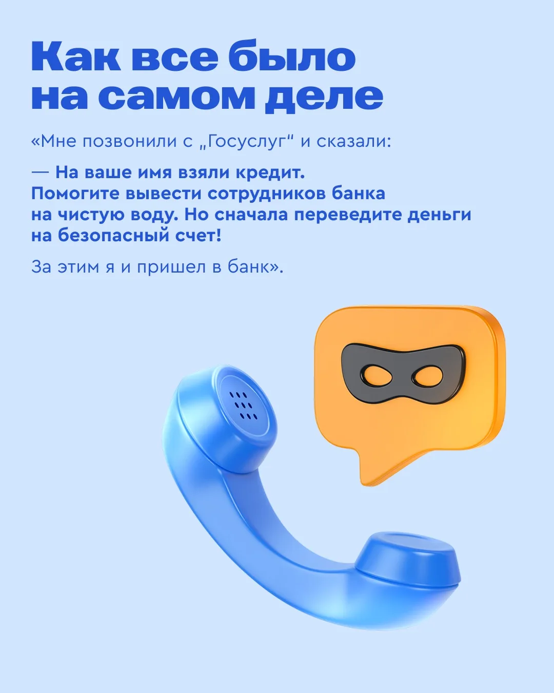 😱 На вас взяли кредит. Чтобы обезопасить себя, срочно переведите деньги на безопасный счет!