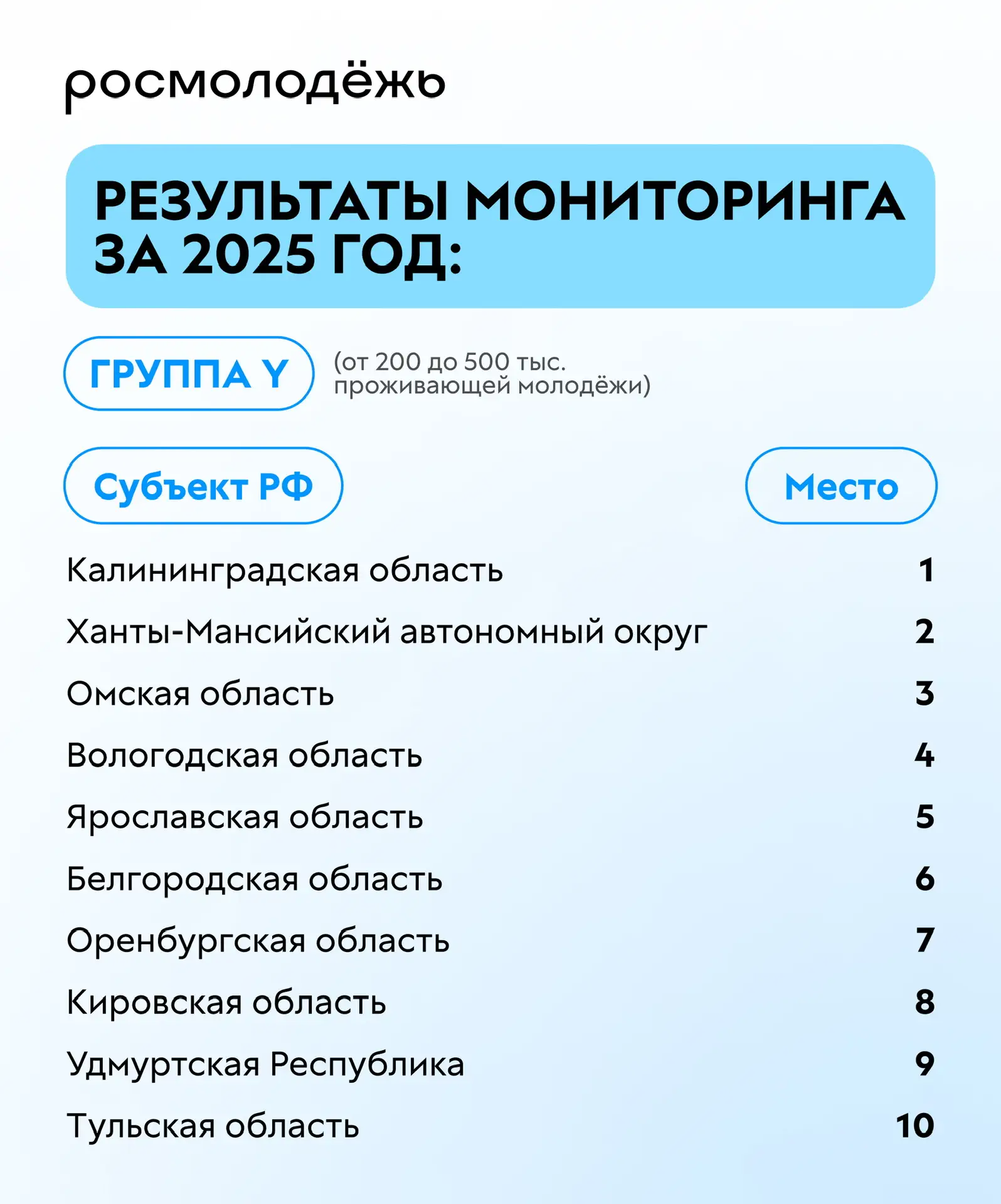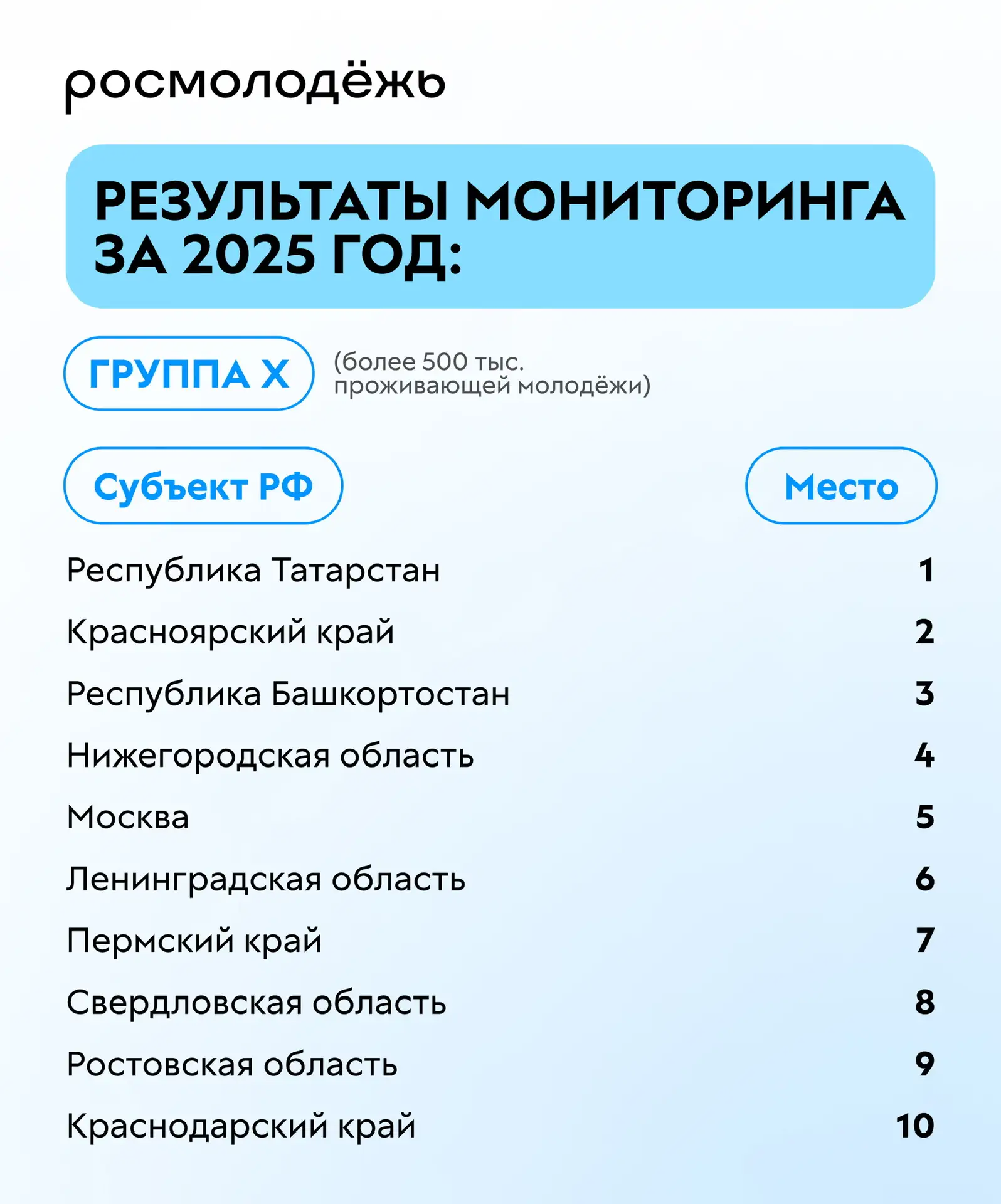 Традиционно подводим итоги главного измерения в сфере молодёжной политики — ежегодного мониторинга эффективности среди регионов России.