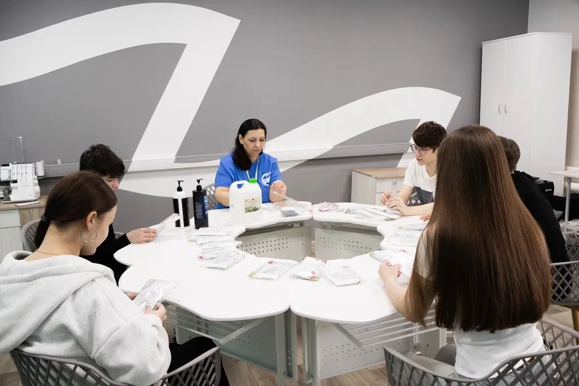 В пространстве ребята занимаются шитьём, графическим дизайном и киберспортом, осваивают мастерство вожатого. А ещё помогают нашим защитникам. Волонтёр Оксана Лакомкина вместе с добровольцами изготавливает «сухой» армейский душ для бойцов. Уже отправили на фронт более 400 комплектов.