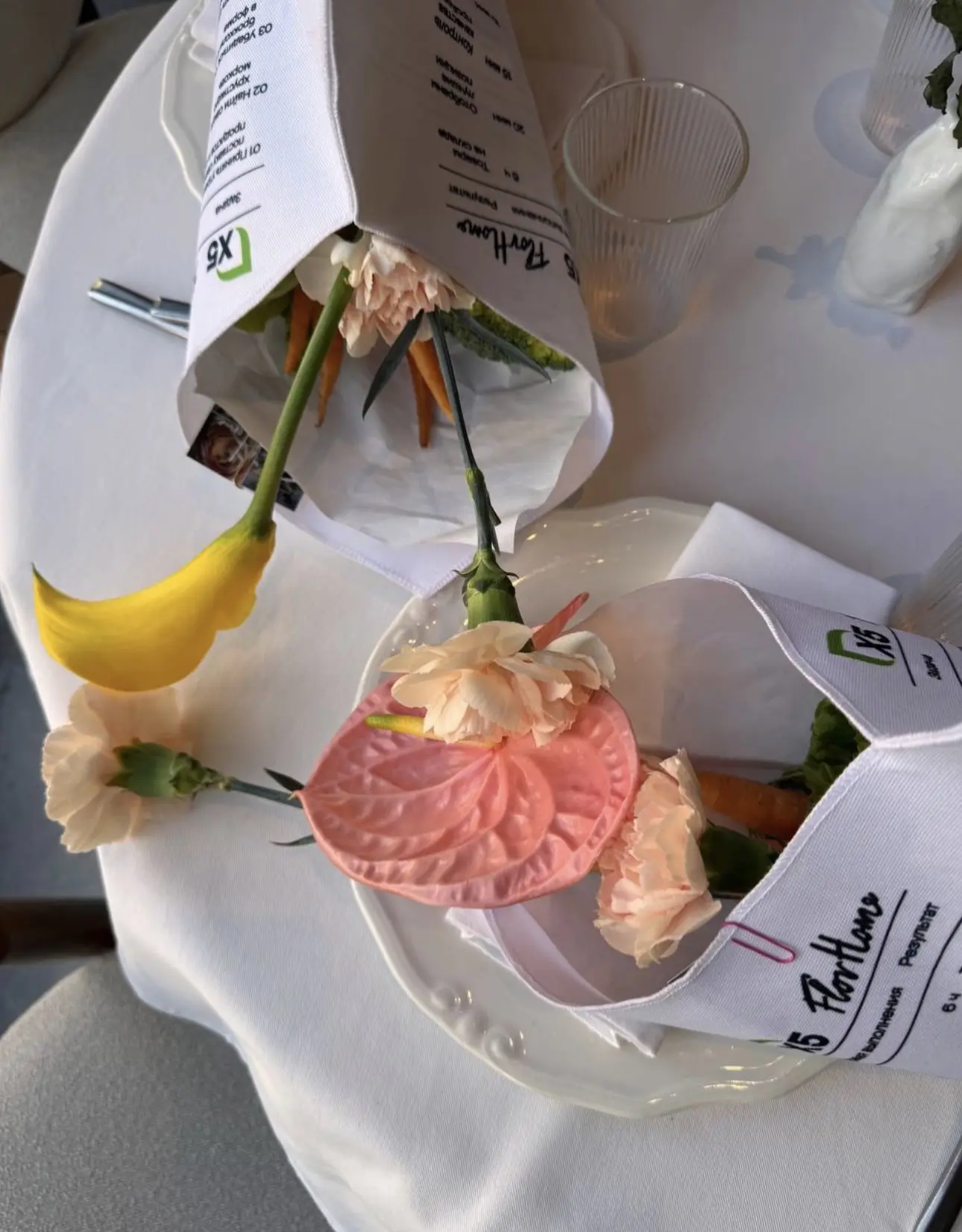 Поделюсь необычным ощущением: выхожу я, значит, с модного показа (индустриального), а мне в подарок вручают букет, очень необычный. Генеральный партнер показа, X5, вместе с брендом цветов FlorHome подготовил комплимент для гостей — букет из овощей.