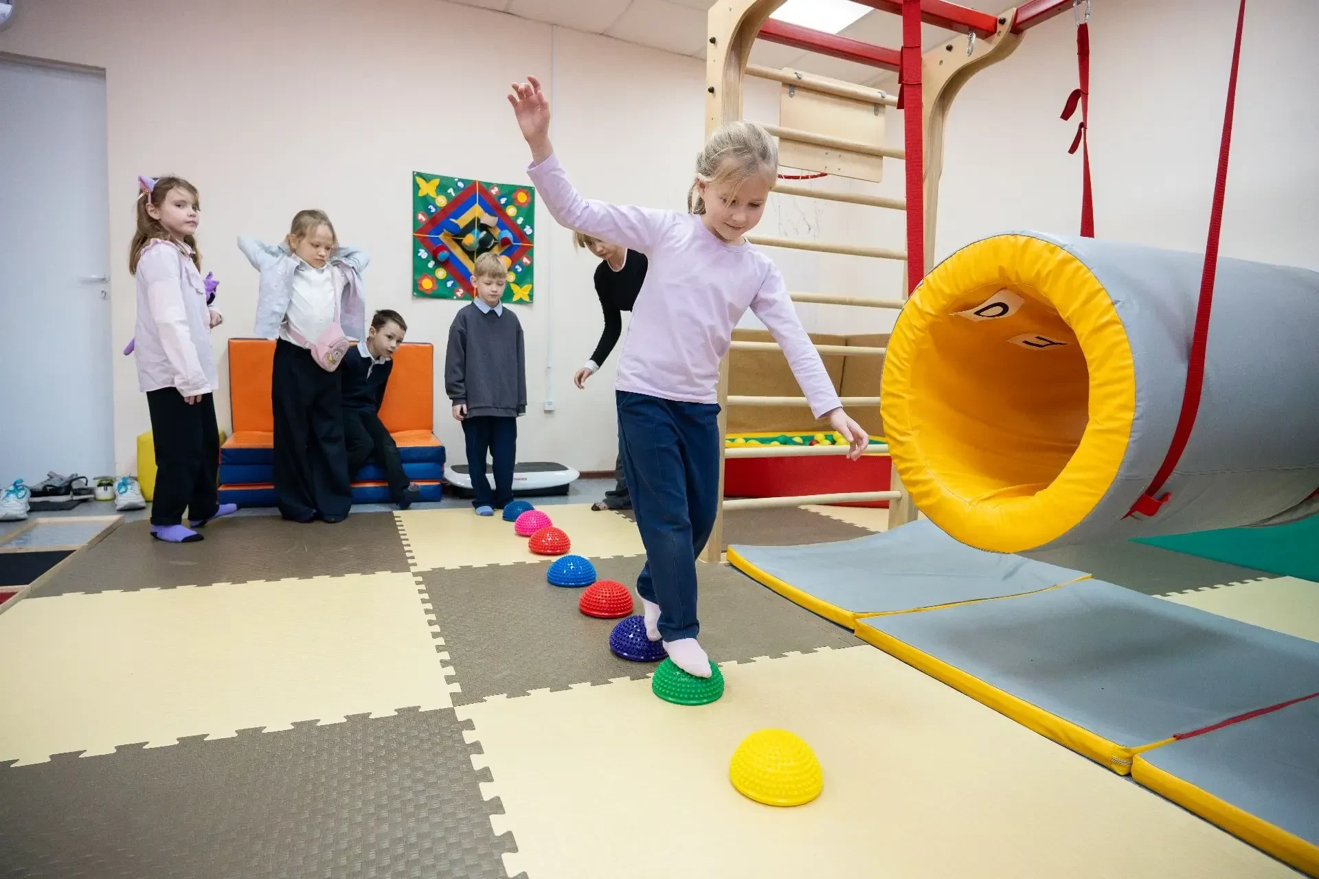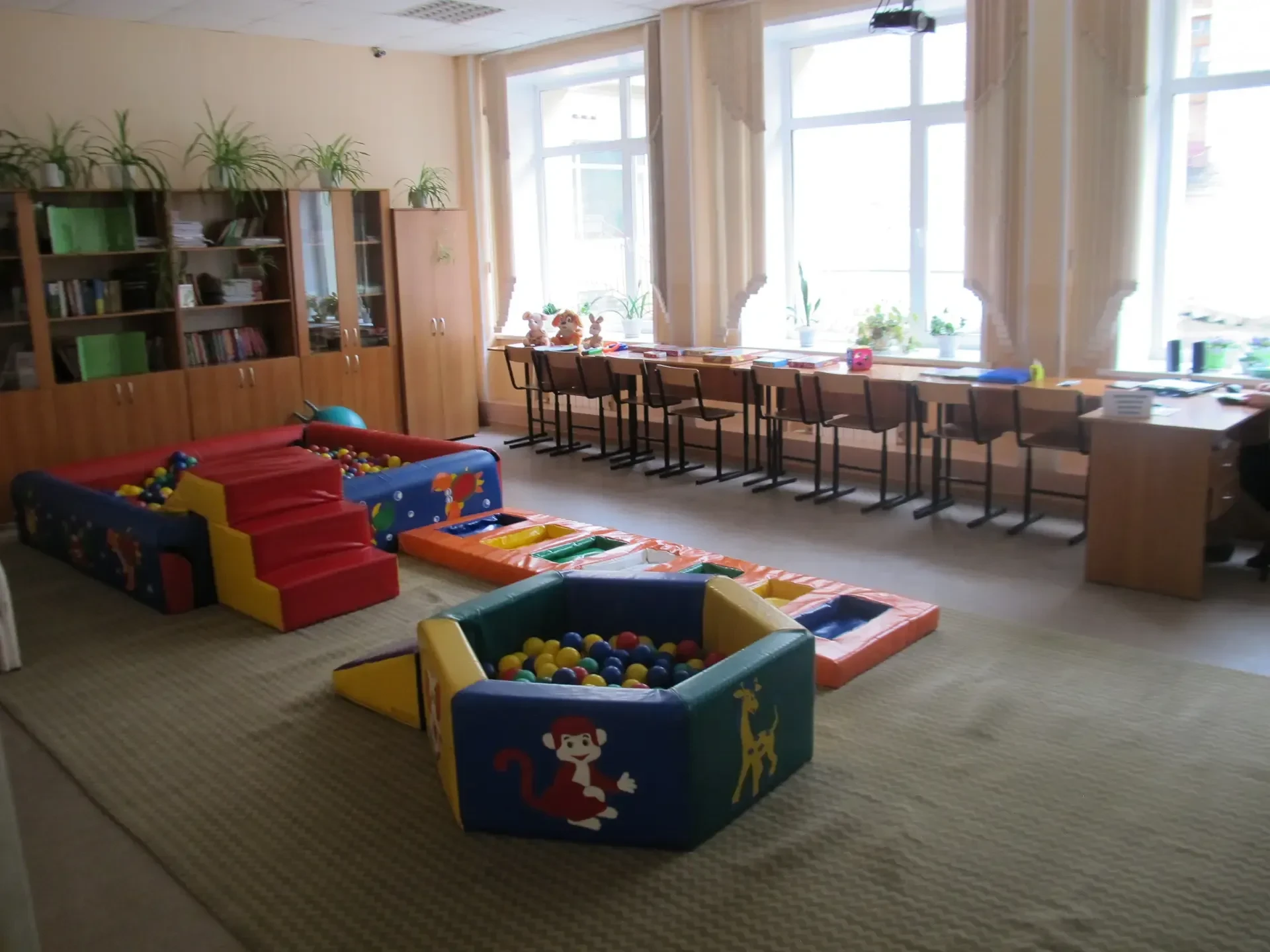 Оборудовали просторные учебные кабинеты, зал для гимнастики, современный пищеблок и уютную столовую. Оснастили всем необходимым студию кукольного театра, кружок юных инспекторов движения, секции лыжной подготовки и шахмат.