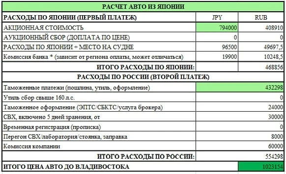 Конечная стоимость в городе Владивостоке 1.300.000₽