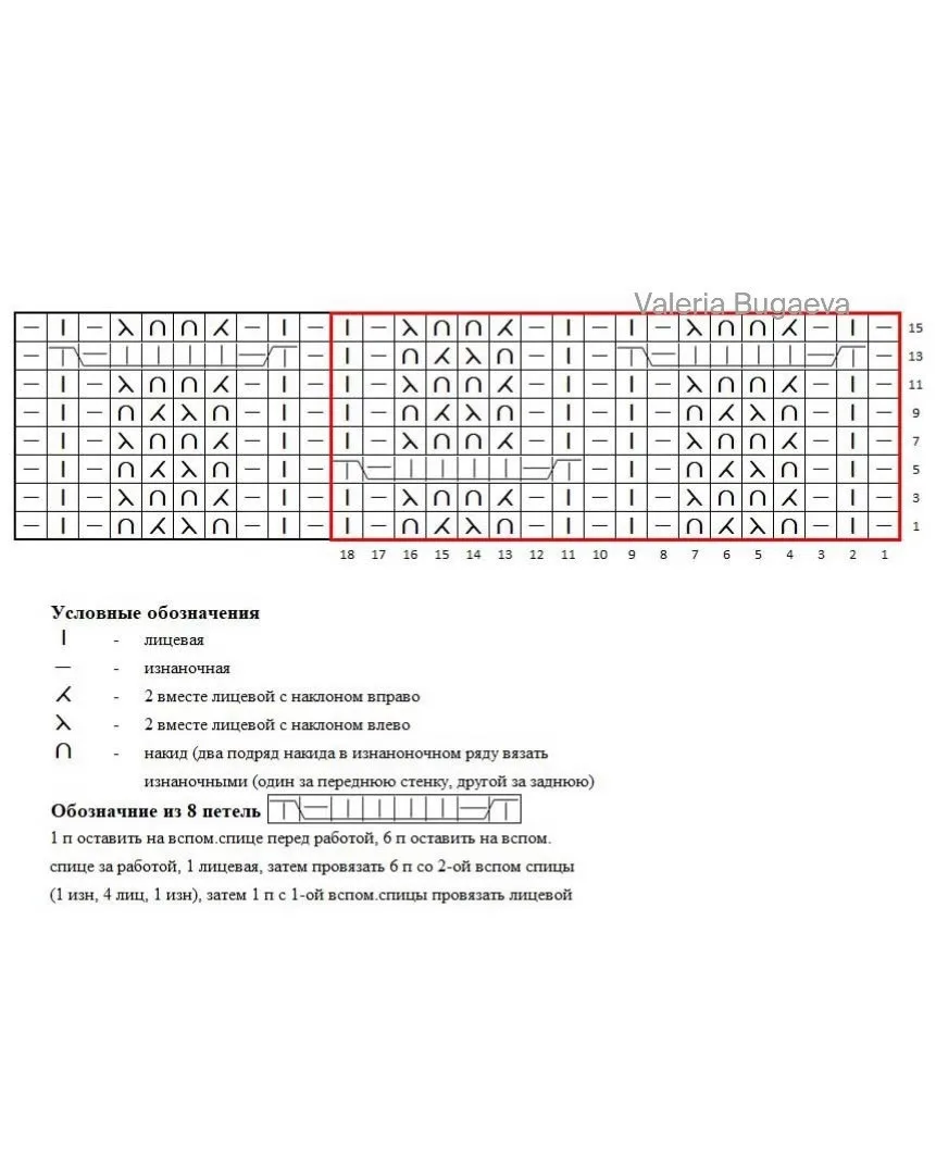 Узор спицами. Схема.