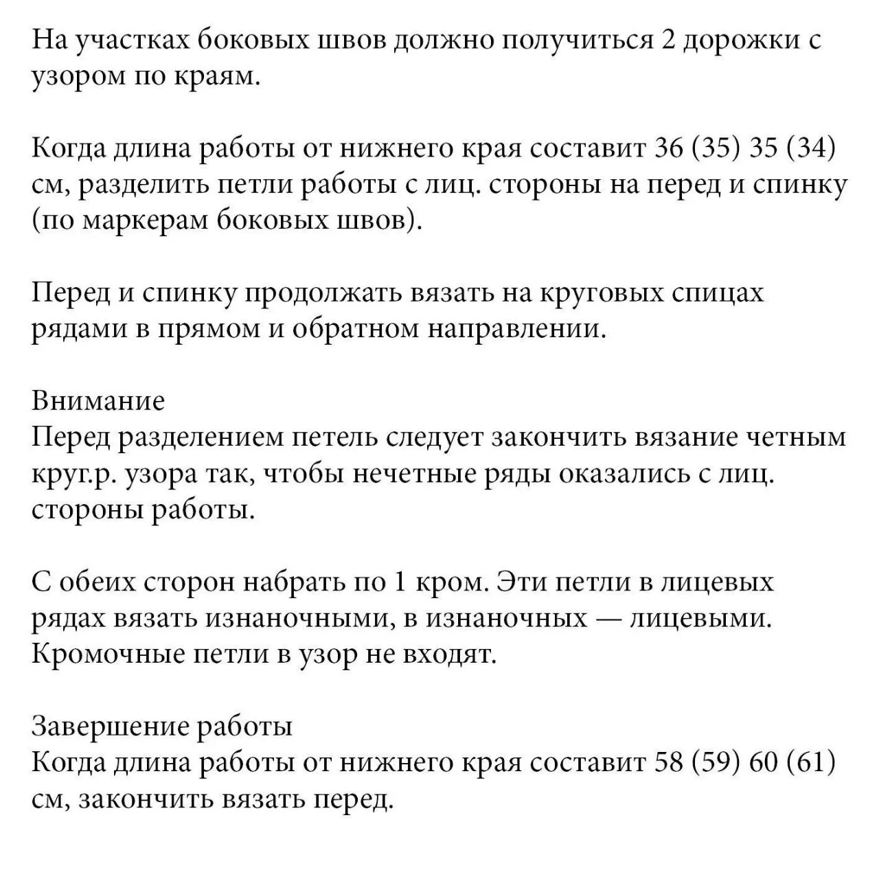 Длина изделия (по спинке): 58 (59) 60 (61) см