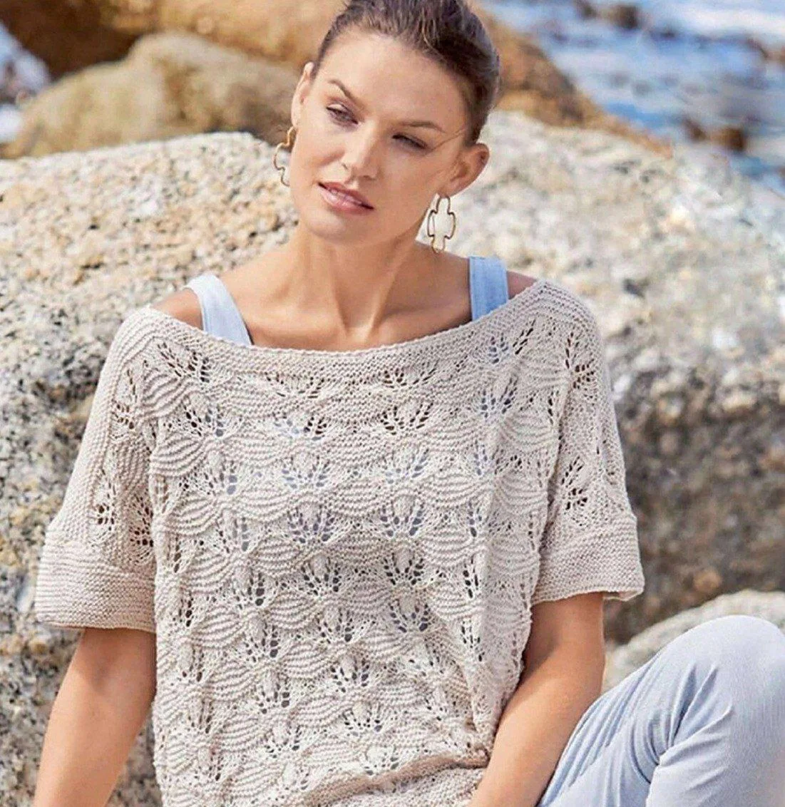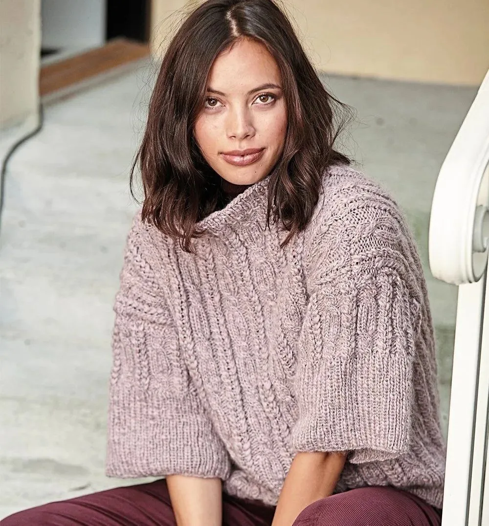 🌺Чудесные рельефные «косы» составляют основу дизайна этого бледно-сиреневого джемпера с широкими рукавами ½ и просторной горловиной.