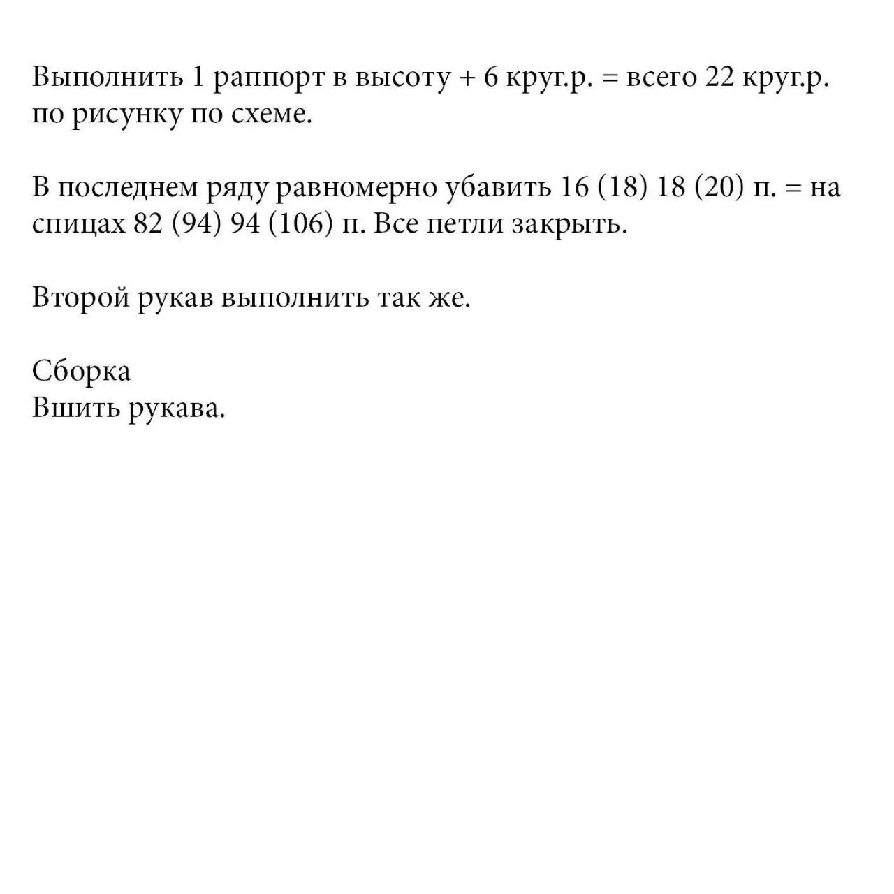 Длина рукава по внутреннему шву: ок. 19 см (для всех размеров)