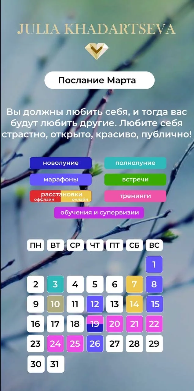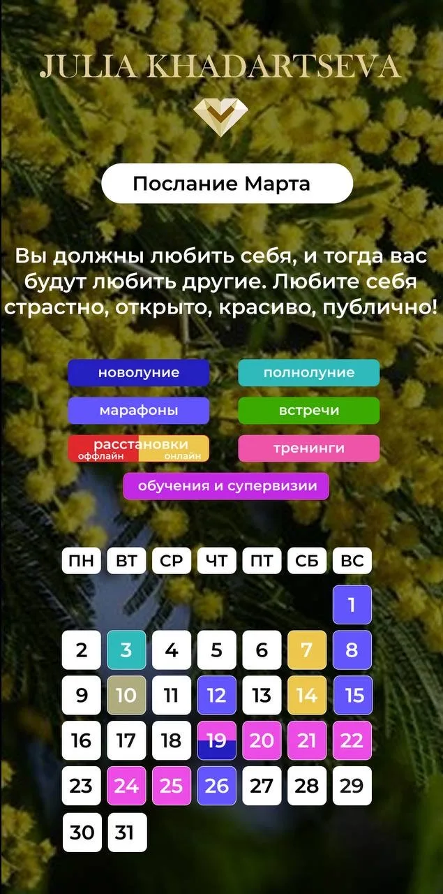 Март - про фундамент, родителей, силу и миссию. Сохраняйте расписание и планируйте время для себя.