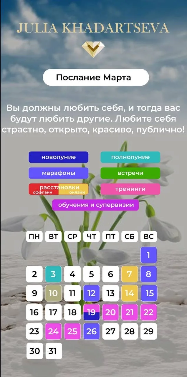 8 марта у Юлии стартует расстановочный марафон «Время быть женщиной». Про ценность, принятие и уважение к себе и к другим женщинам.