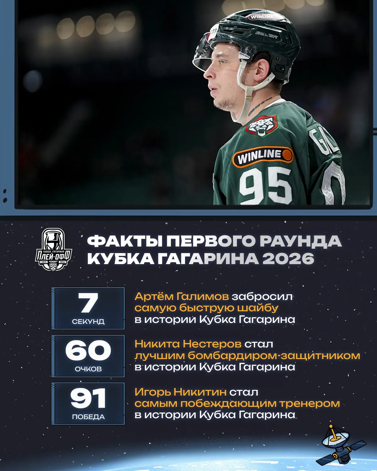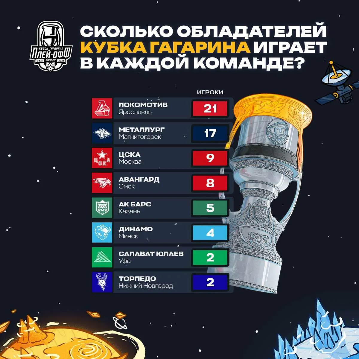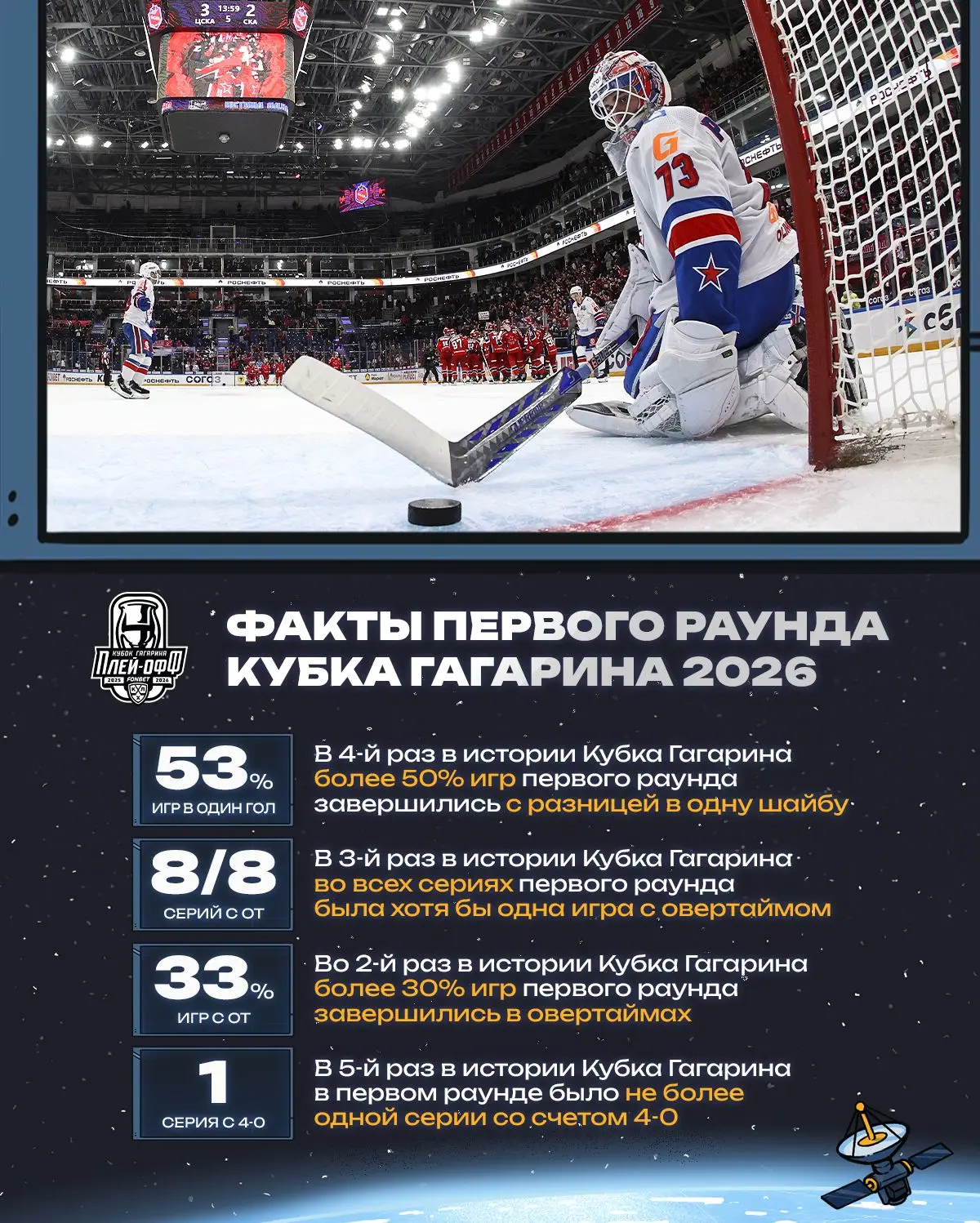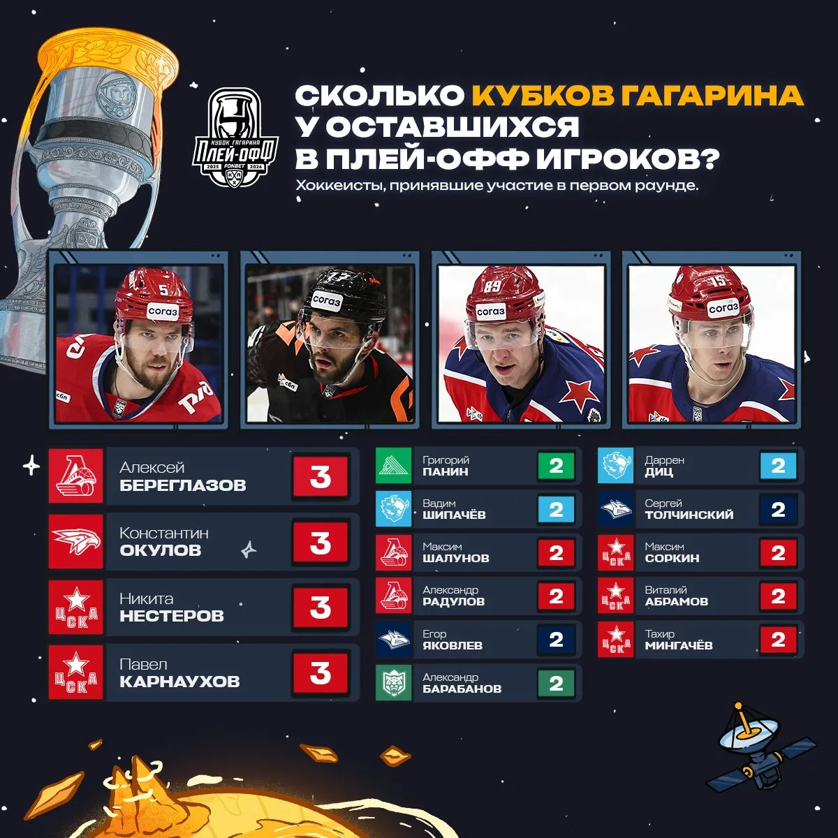 В истории Кубка Гагарина было 12 игр, которые длились более 108 минут — именно столько длился первый полет человека в космос.