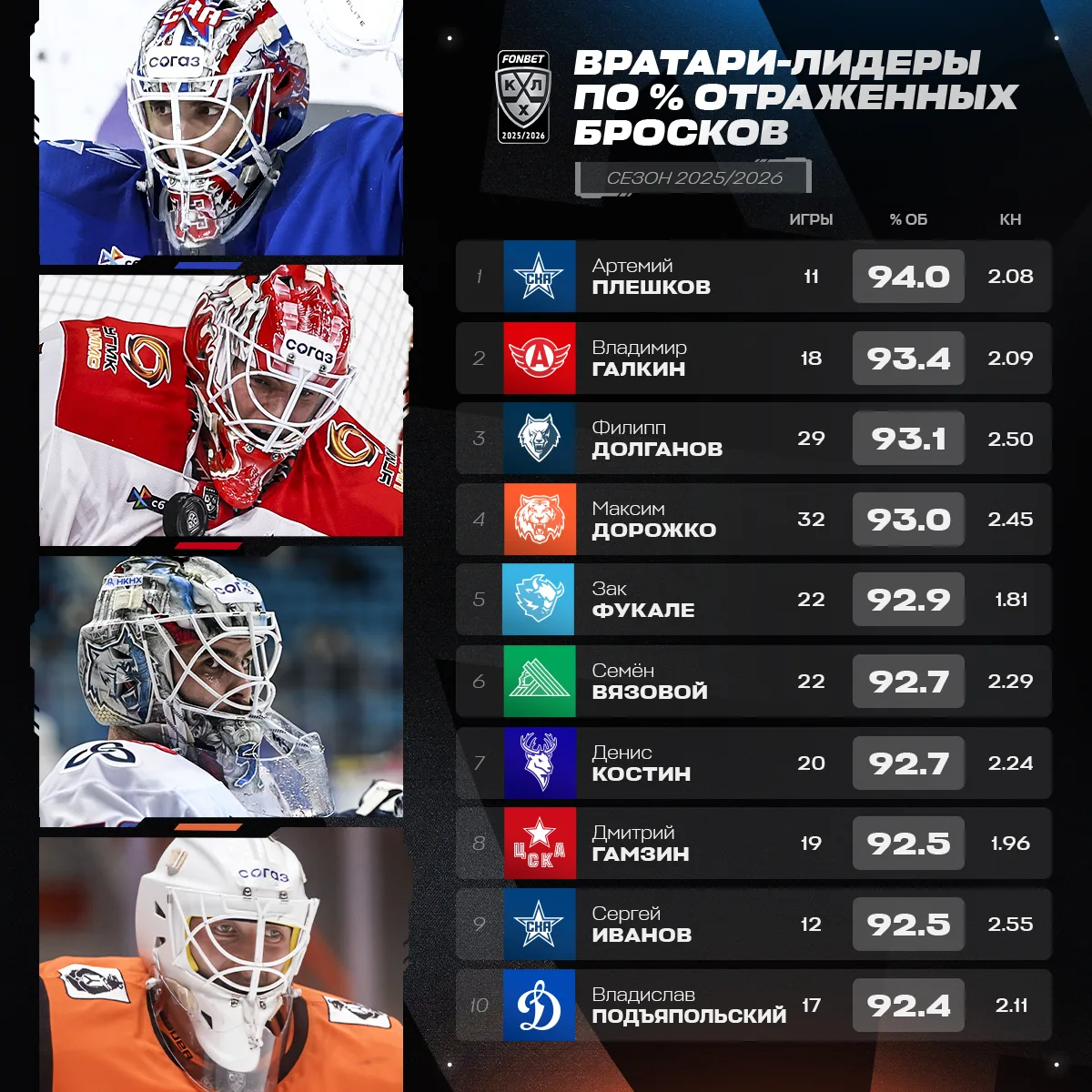 Четыре вратаря подошли к паузе с >93% ОБ.