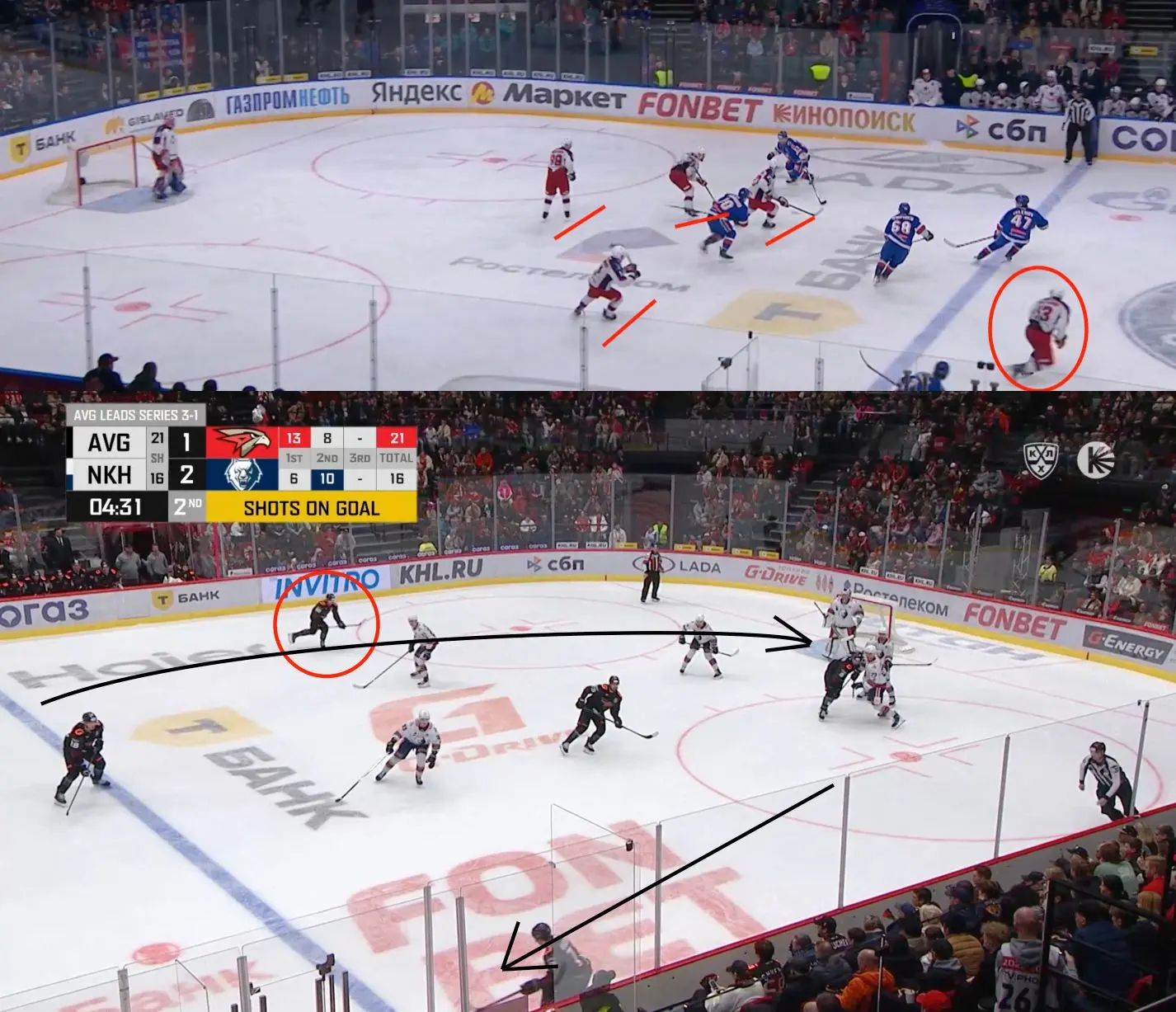 «Подопечные Никитина очень плотно встречают соперников на своей синей линии по схеме 1-2-2, в которую оппоненты раз за разом попросту „упираются“. А после отбора шайбы пятый хоккеист ЦСКА убегает „рыбачком“ под чужую синюю линию».