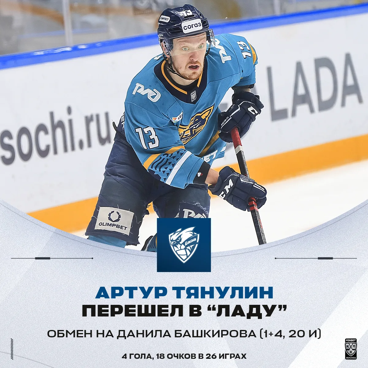 В «Ладу» переходит второй бомбардир ХК «Сочи» Артур Тянулин.