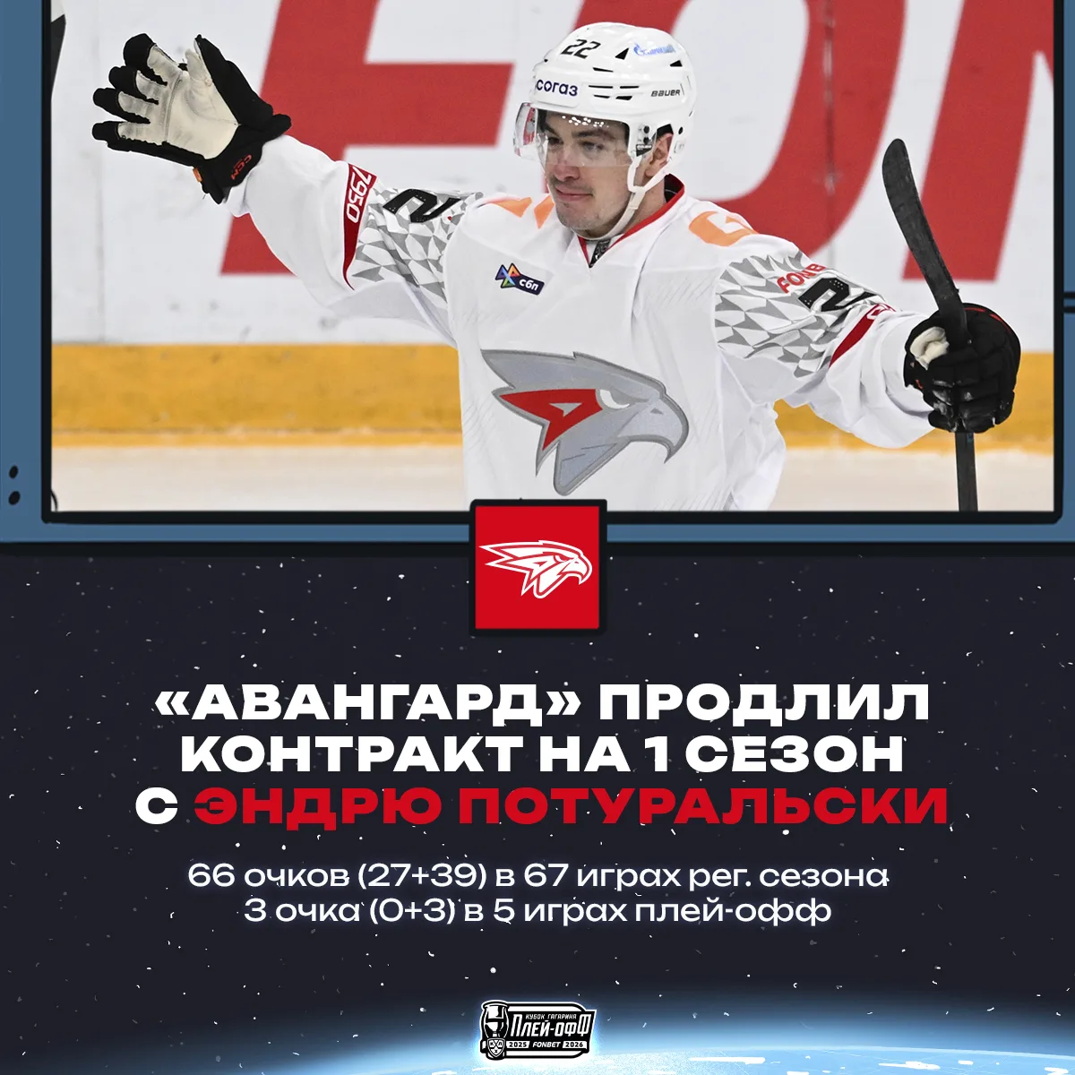 ⚡️ Хоккейный клуб «Авангард» продлил контракт с нападающим Эндрю Потуральски на один сезон.