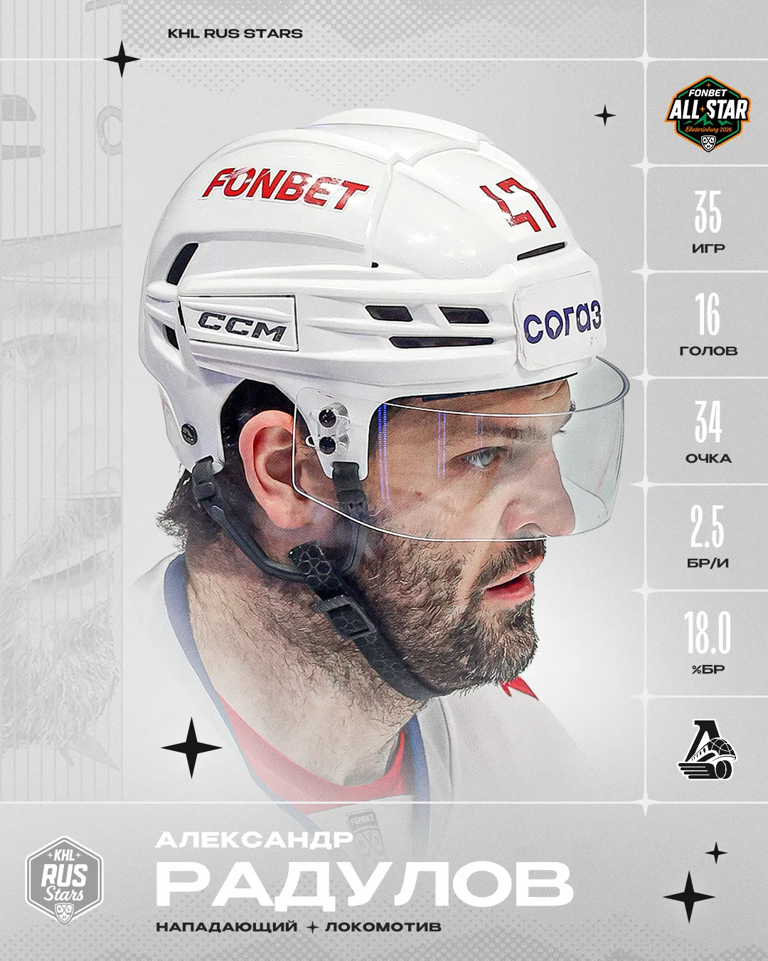 Страсть Радулова, «фокусы» Лямкина, надёжность Долганова и Дорожко — KHL.ru знакомит болельщиков с составом команды KHL RUS Stars, в которую вошли лучшие игроки Лиги с российским гражданством.