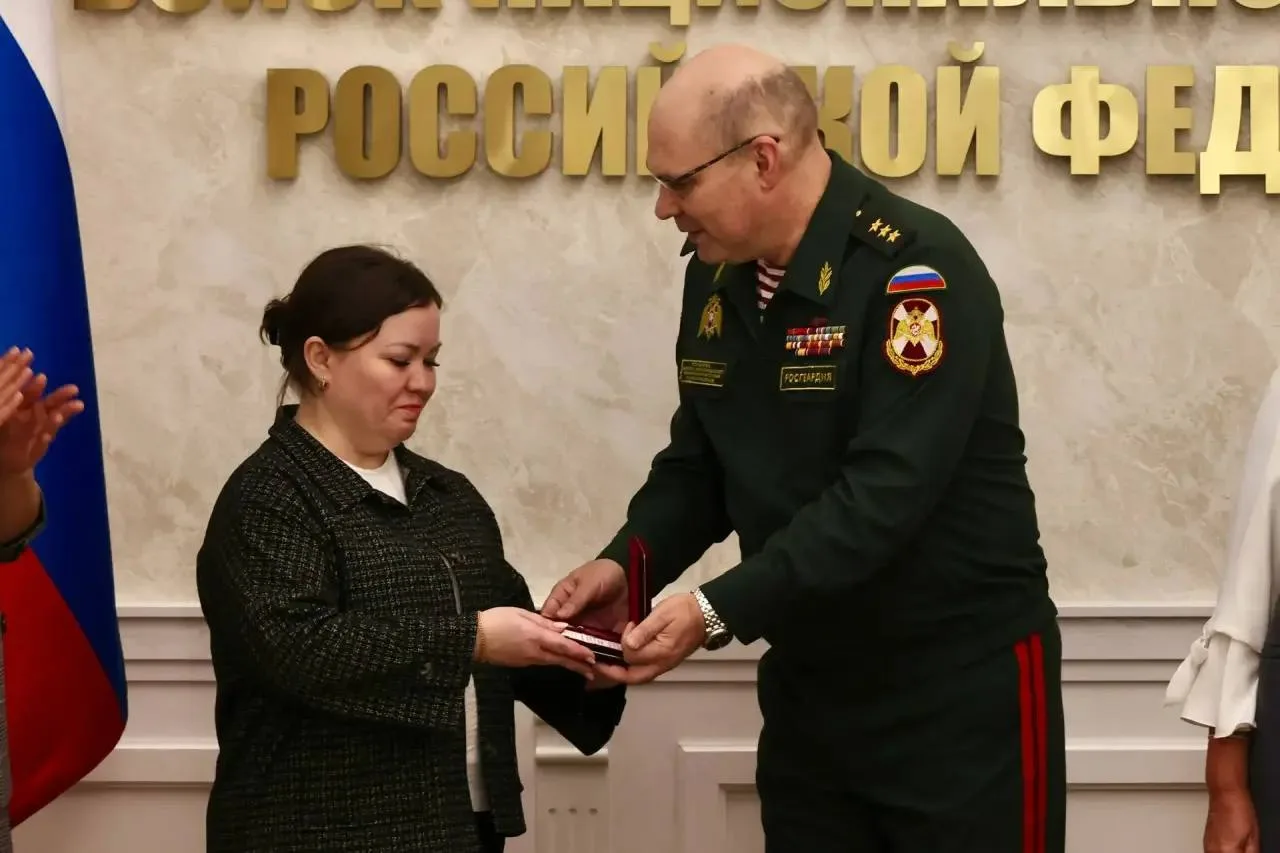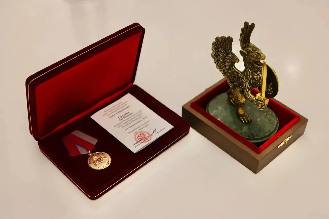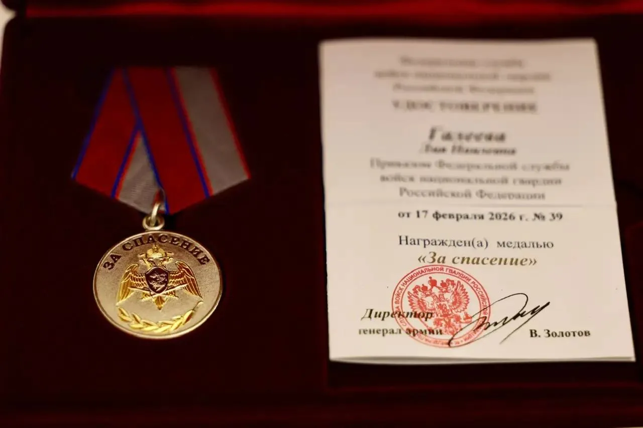 Виктор Васильевич Золотов наградил медалью «За спасение» воспитательницу детского сада Лию Галееву. Директор Росгвардии отметил подвиг воспитательниц, обезвредивших до приезда сил службы нападавшего с ножом, бросавшегося на детей. Вручил награду и памятные подарки Заместитель Директора Олег Плохой.