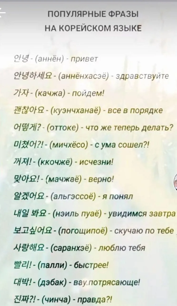 Самые распространённые корейские глаголы топ-20: