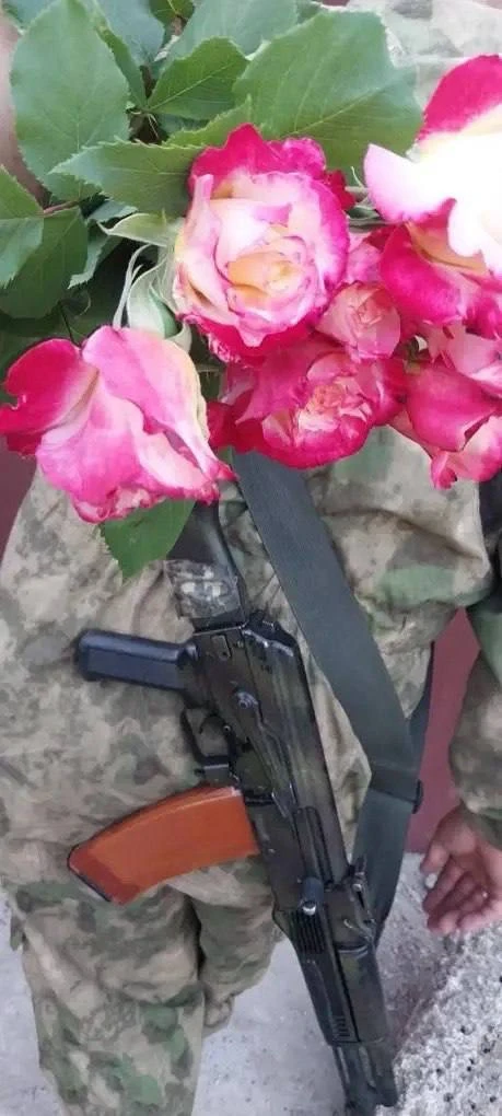 "Шок был просто, когда увидела, что муж меня встречает с огромным букетом роз. Я не поверила глазам. Оказывается, эти розы он вырастил сам. Недалеко от расположения в разрушенном дворе остались кусты роз. Он стал за ними ухаживать. Поливал их, носил воду из речки. И очень боялся, что они не успеют расцвести к моему приезду. Но они расцвели",