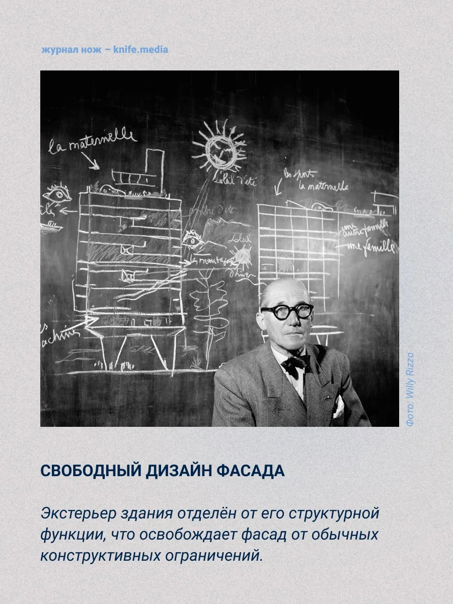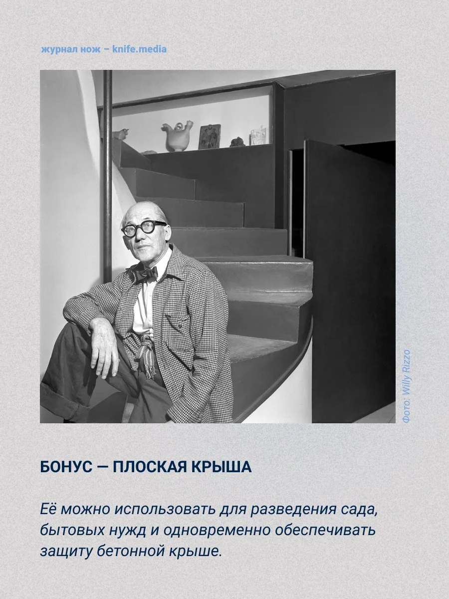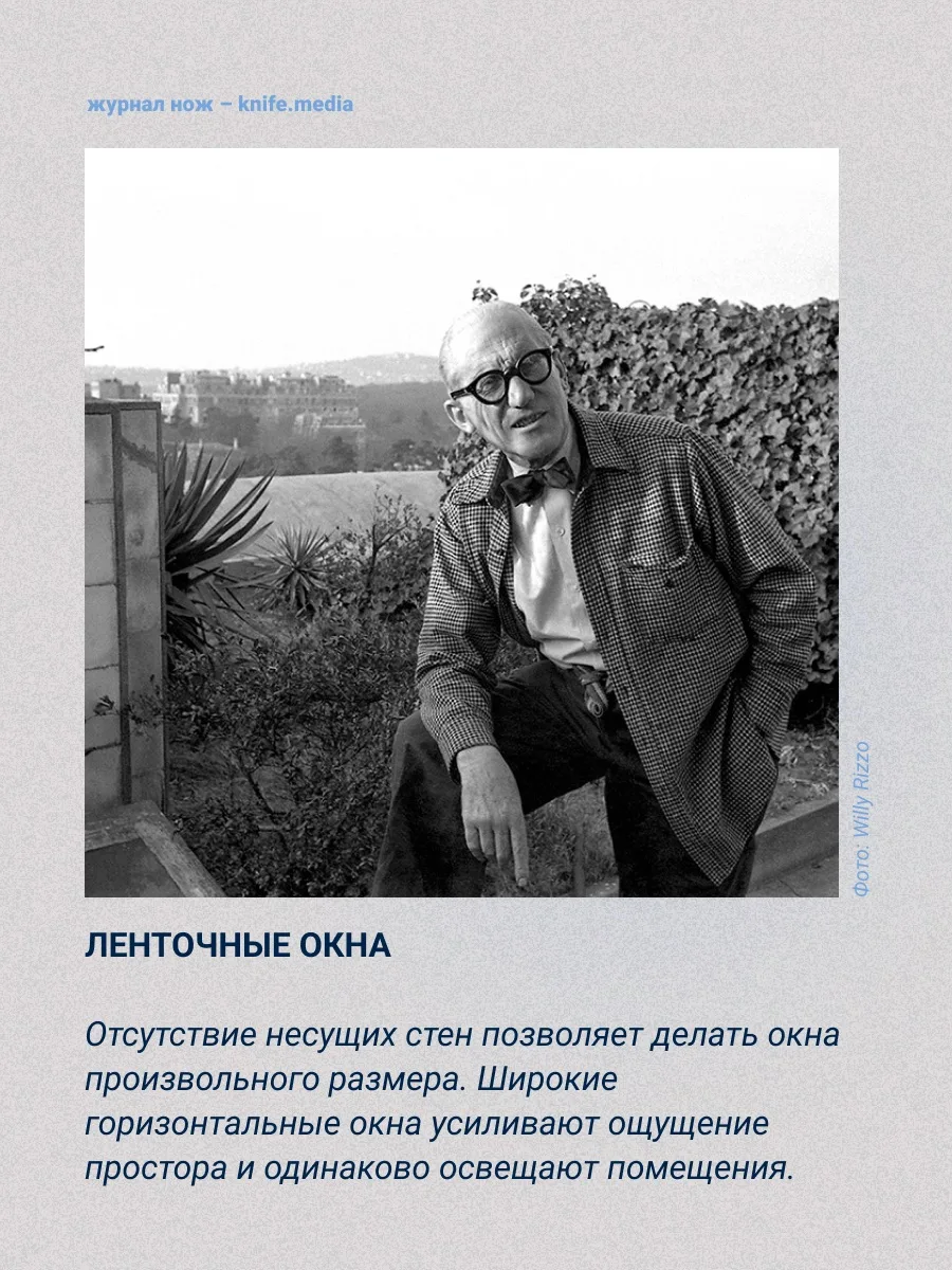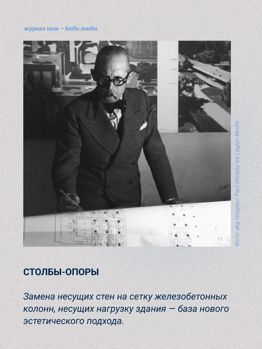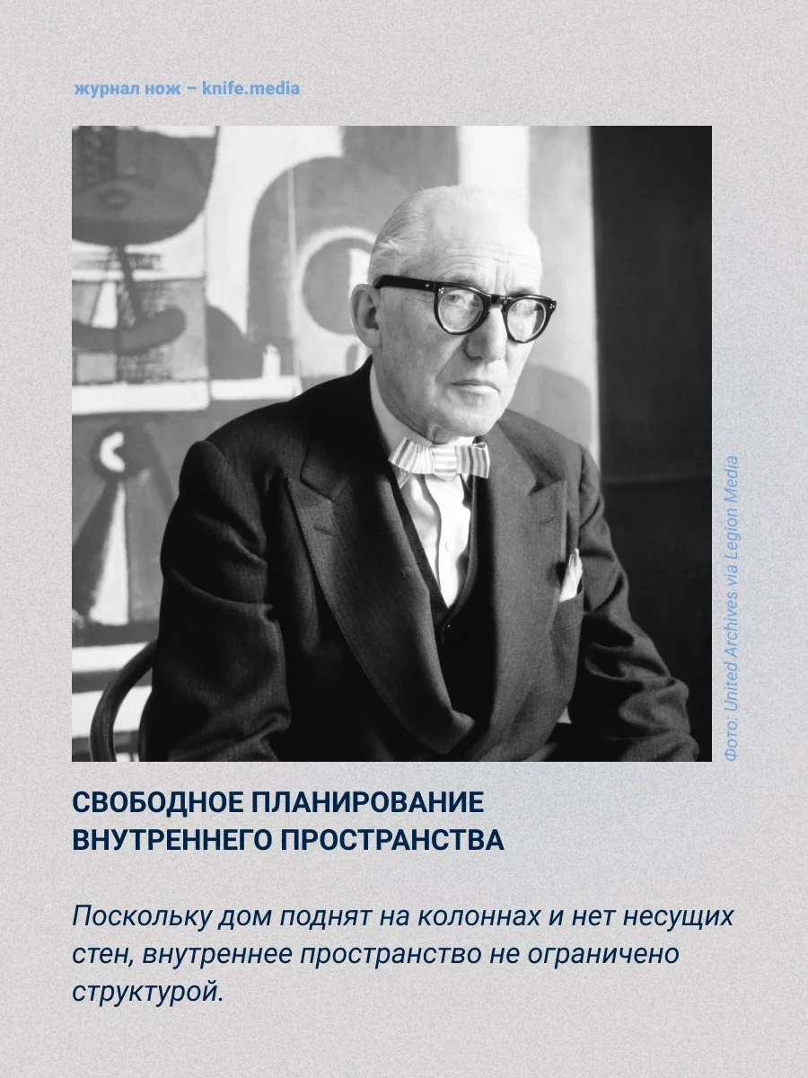 Его «Пять пунктов новой архитектуры» (1927) повлияли на вид привычных нам построек по всему миру. Подробнее — в карточках.