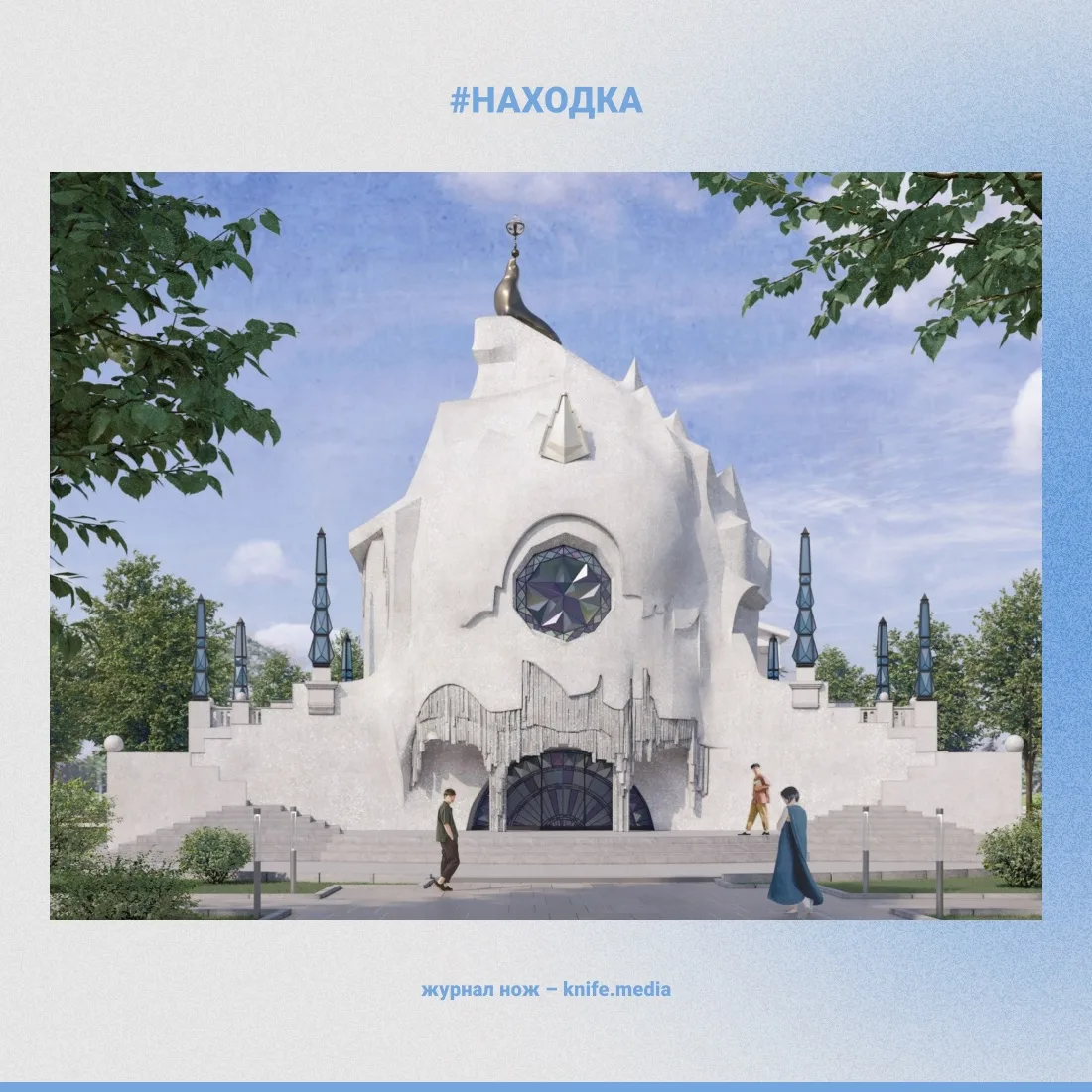 В основе классическая базилика, переходящая в бесстолпный храм. Все формы выполнены в виде бионики и основаны на синтезе параболических арок разной интерпретации. Есть привычные закомары, кокошники, арочные элементы, но уже в новом выражении. Одним словом — #Находка