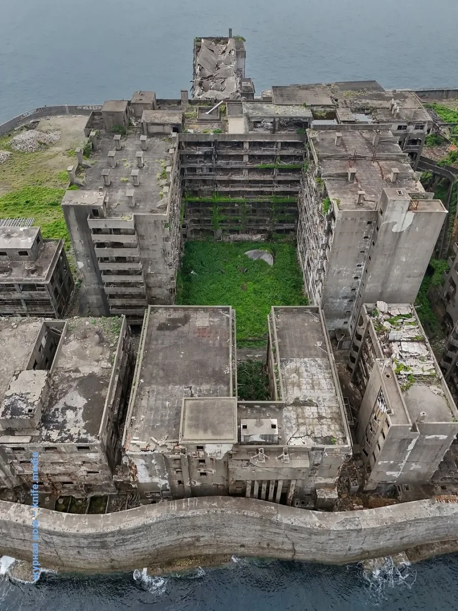 Но добыча угля пришла в упадок, шахты истощились и в 1974 году закрылись. Остров обезлюдел и превратился в мрачный символ быстрой индустриализации Японии. Одна из заброшенных шахт сохранилась до сих пор.