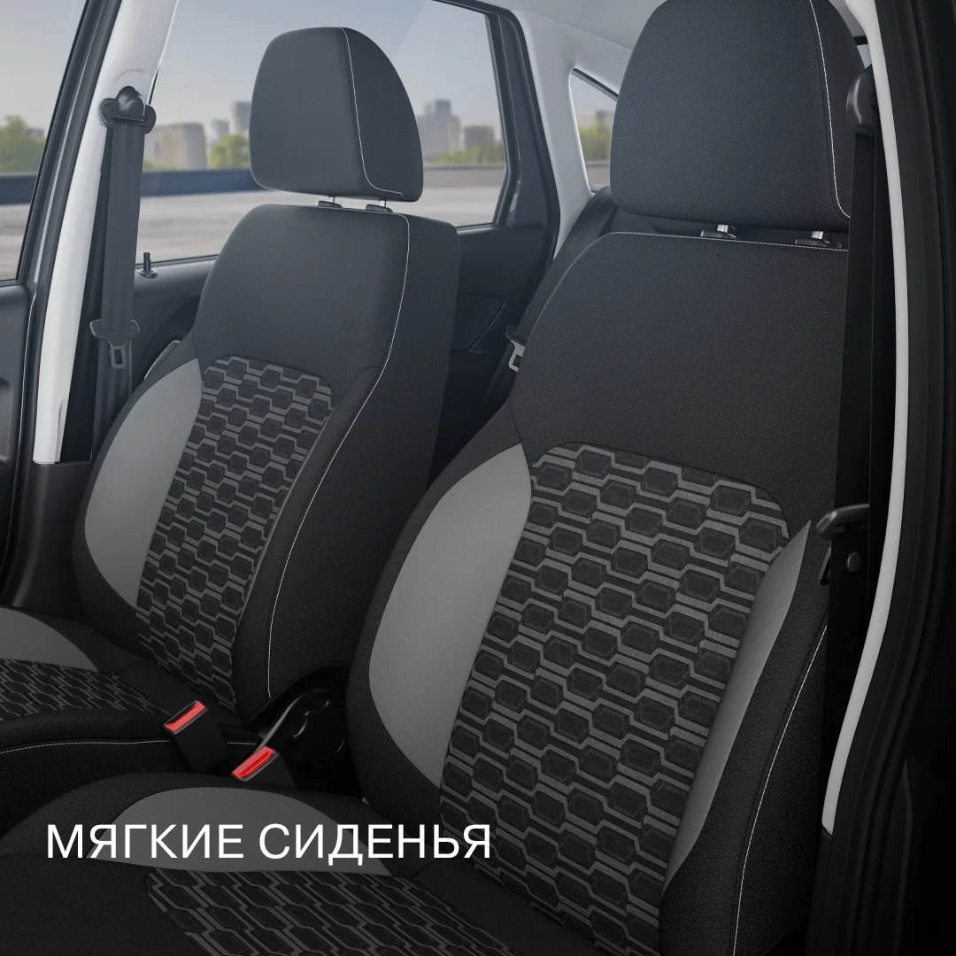 И третья особенность — впечатляющий простор салона при внешней компактности. Вы наверняка встречали такие автомобили, которые внешне выглядят крупно, солидно, а внутри оказываются неожиданно тесноваты. Но LADA Granta Active Cross — совсем другое дело! Компактная модель обладает полноценным пятиместным салоном. Здесь много воздуха, много ниш, карманов, и даже на панели приборов есть отдельный центральный «бардачок» с крышкой.