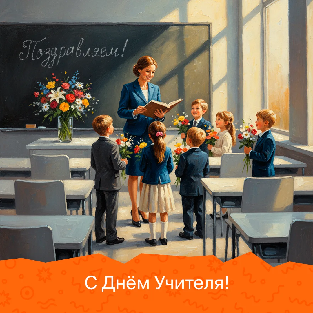 Друзья, всех, кто трудится в сфере образования, – с Днем учителя! Вы настоящие герои и созидатели нашего будущего. Желаем вам крепких нервов, неиссякаемого оптимизма – и, конечно, прилежных учеников!