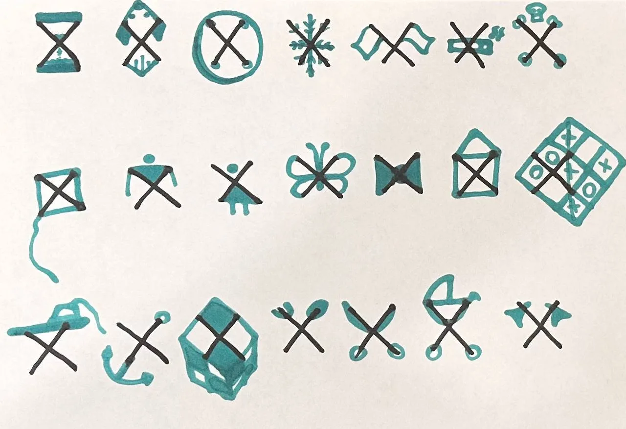 🔸Берем ручку и начинаем крестики превращать в картинки и небольшие зарисовки, например, вот так (рис.2)⬆️