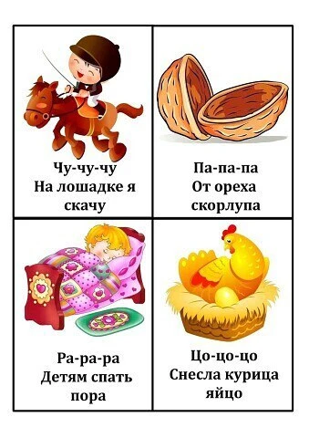 Не используйте скороговорки, если у ребенка еще нет правильного произношения звуков, особенно тех, которые часто встречаются в скороговорке. Подходите к ним, когда звуки уже правильно произносятся, но требуют дополнительной тренировки.