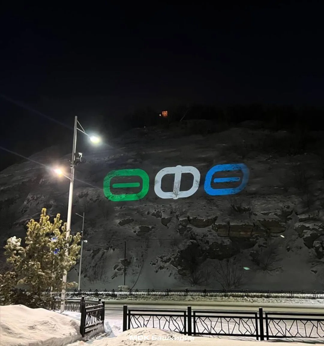 На склоне у реки Белой, под реконструируемым памятником Салавату Юлаеву, включили новую световую проекцию — «ӨФӨ».