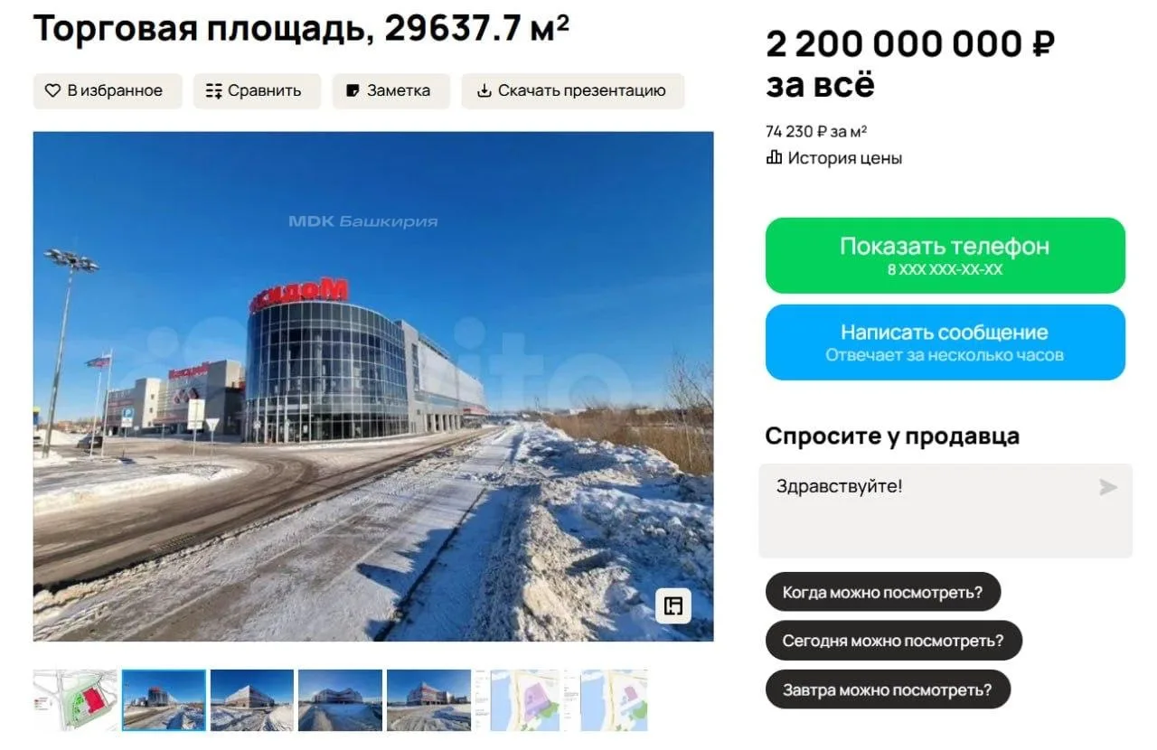 Уфимский «Максидом» на въезде в Инорс выставили на продажу