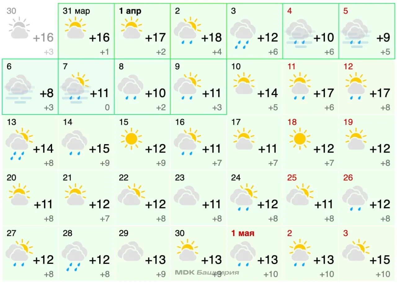 Ладно, с 1 апреля. Сегодня и завтра до +18 и весь месяц будет не ниже +8.