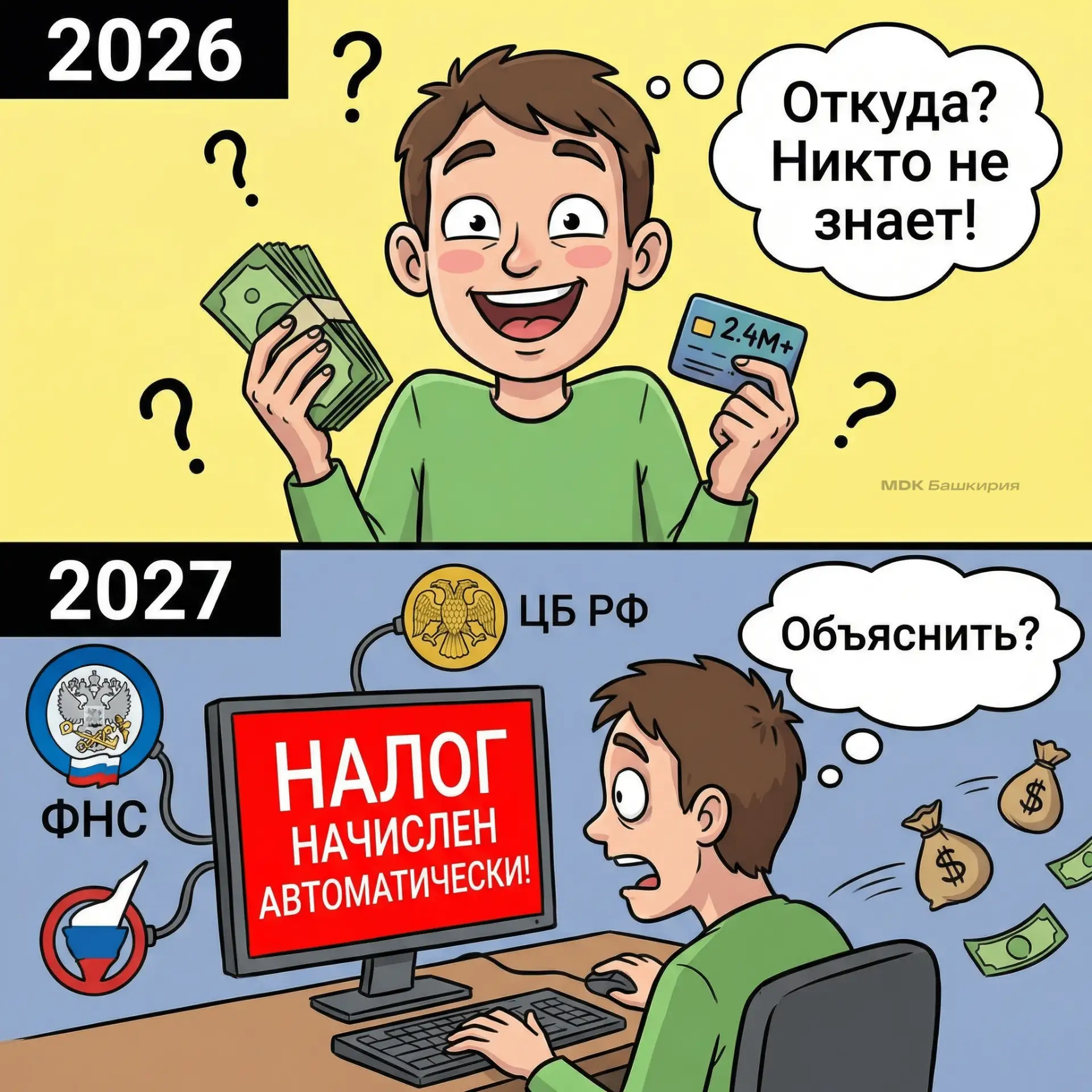 Если на карту приходит больше 2,4 млн рублей в год, и вы не можете объяснить, откуда деньги, налоговая начислит налог сама. ФНС и Центробанк начнут обмениваться данными автоматически.