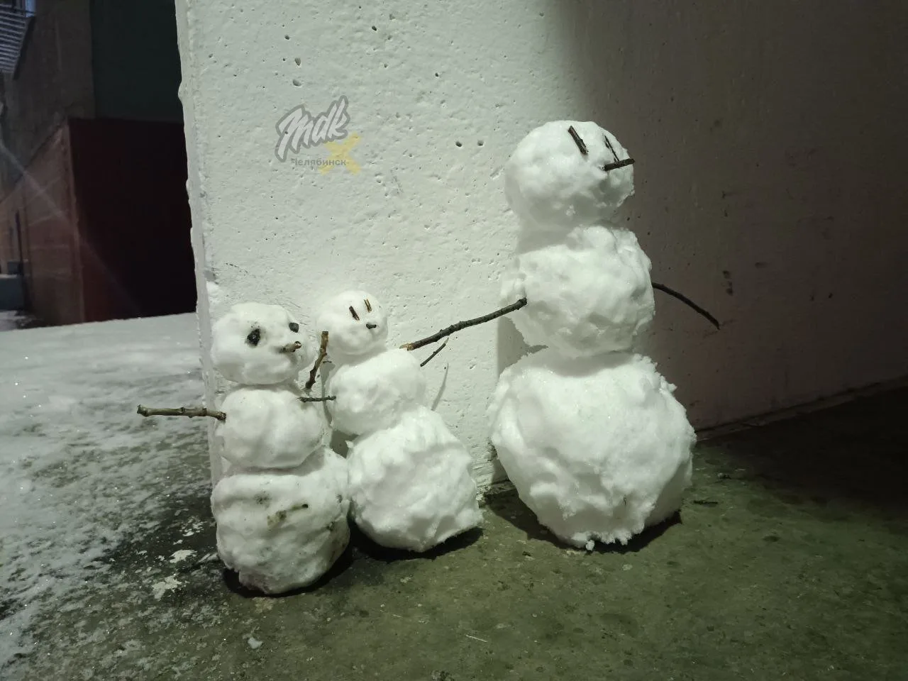 Маленькие снеговички «прописались» у подъезда в Челябинске