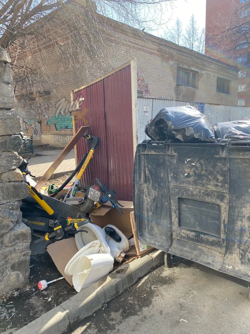 Жители заметили, что кикшеринговые самокаты просто лежат рядом с мусором.