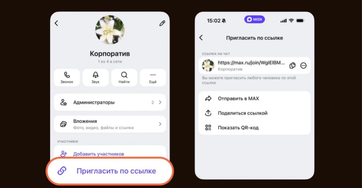 Создаёте новый групповой чат в MAX ➡️ переводите туда людей — по ссылке, QR-коду или вручную ➡️