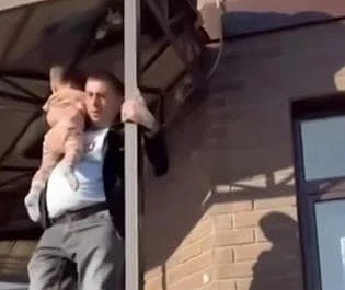 Трёхлетний мальчуган вылез из окна на козырёк подъезда. Но благо внизу оказались те, кто не думает, а делает.